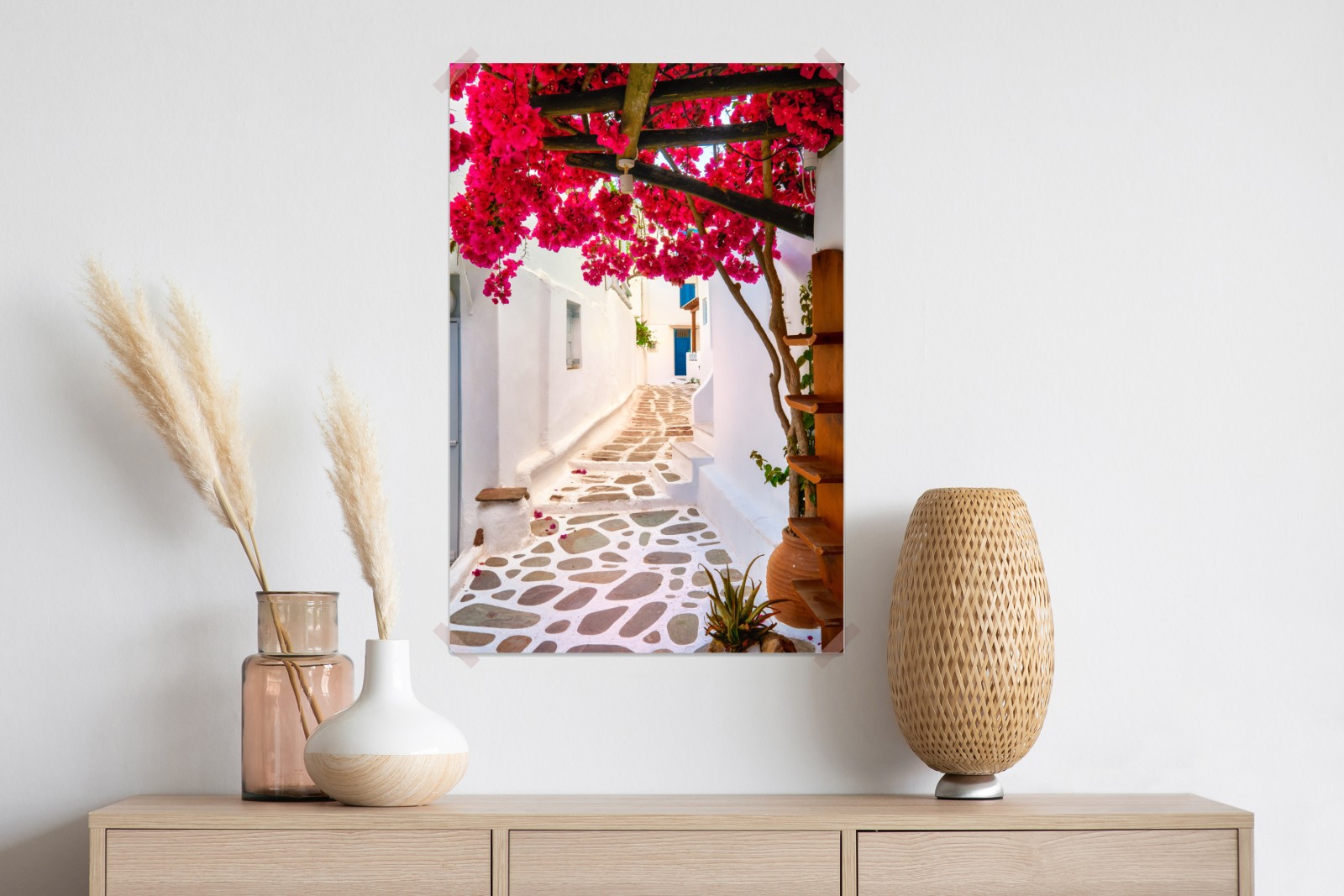 Poster sonnige gasse in Griechenland mit bougainvillea – Wallnifity®