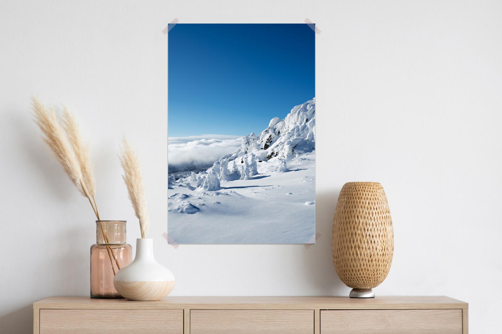 Erleben Sie die klare Stille eines Hochgebirgswinters mit reinem Schnee und tiefblauem Himmel, die jedem Raum eine ruhige, luftige Atmosphäre verleiht.