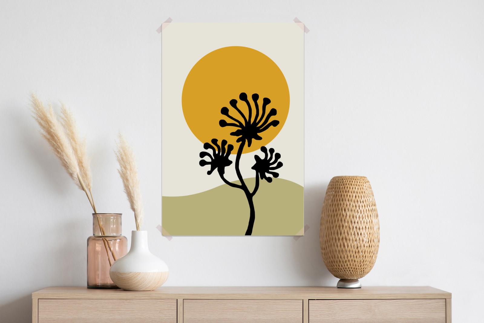 Setzen Sie einen ruhigen Akzent mit dieser minimalistischen botanischen Silhouette in warmen Sonnentönen und neutralen Nuancen, ideal für moderne Räume.