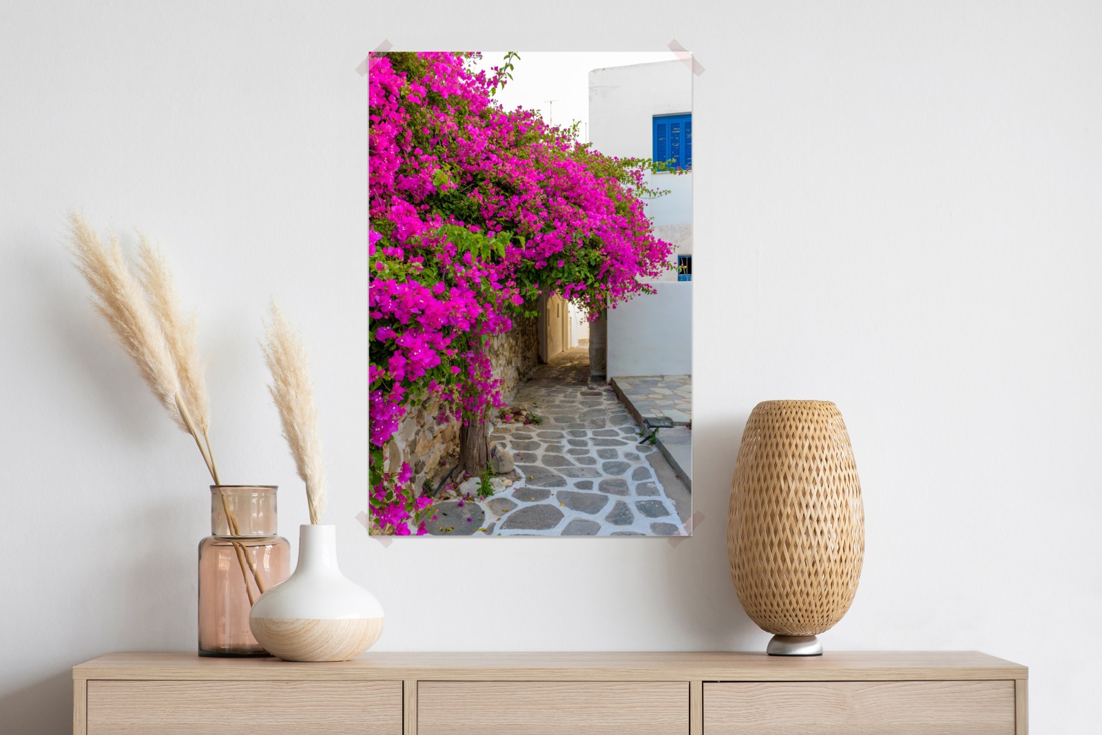 Poster blühende bougainvillea in Naousa gasse – Wallnifity®