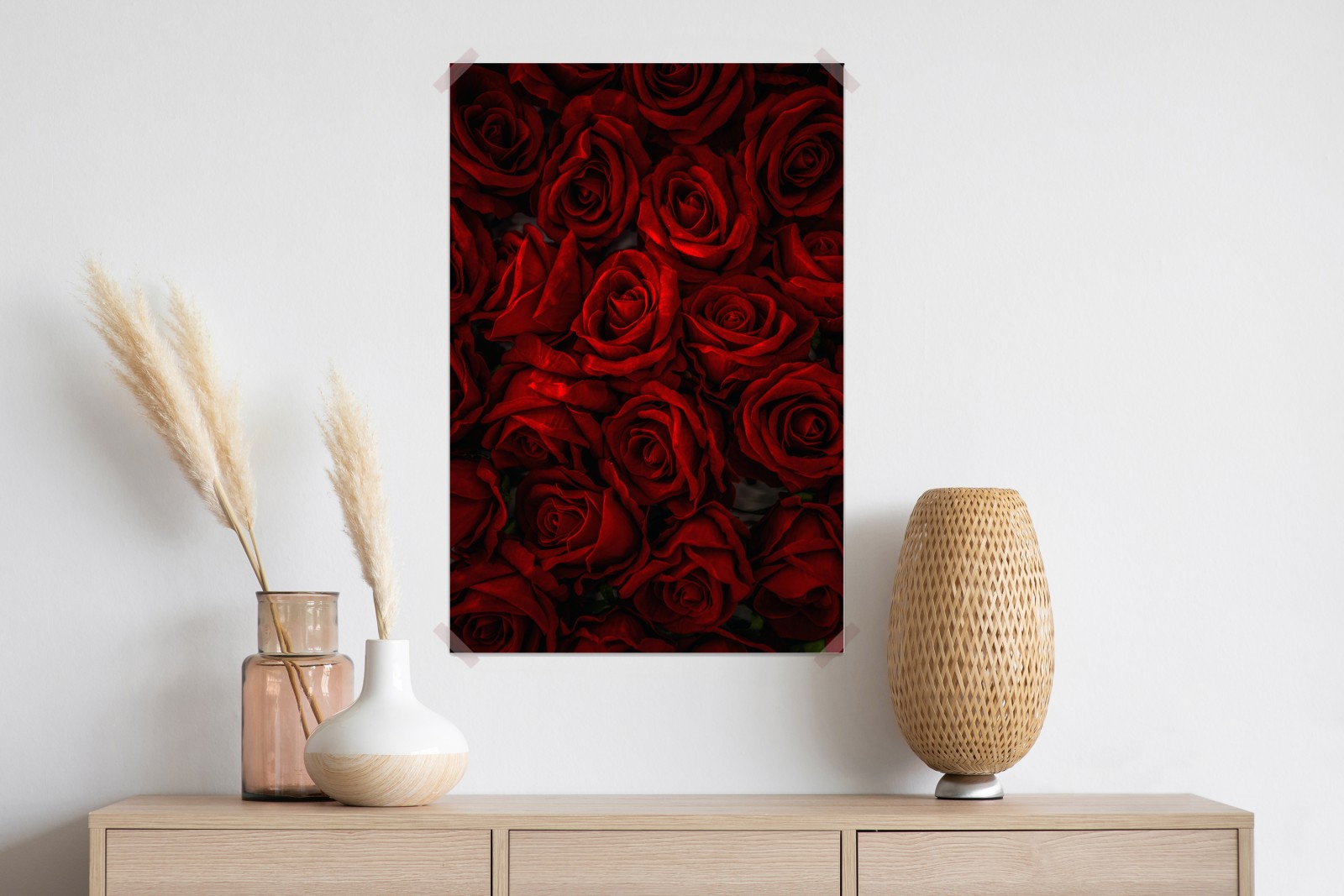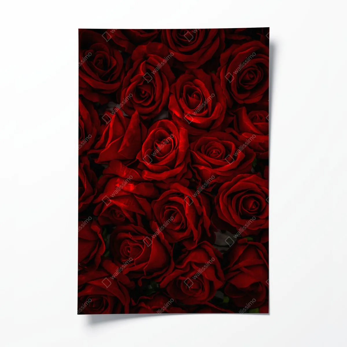 Verleihen Sie Ihrem Raum Wärme und Romantik mit einer intensiven Nahaufnahme roter Rosen.