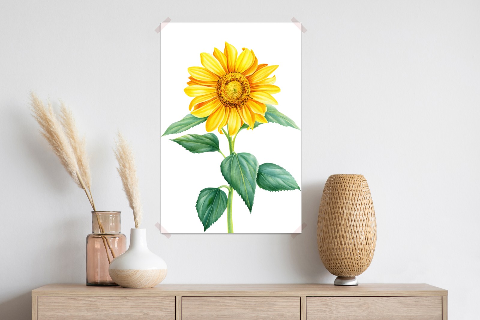 Bringen Sie mit diesem lebendigen Sonnenblumen-Aquarell einen Hauch von Sommer in Ihr Zuhause und verleihen Sie jedem Raum Wärme und natürlichen Charme.