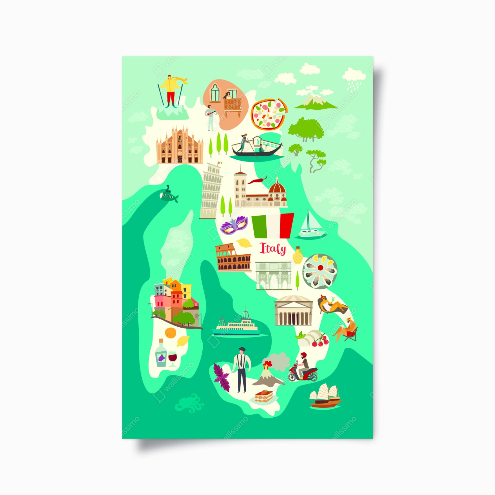 Poster Italien karte mit ikonischen sehenswürdigkeiten