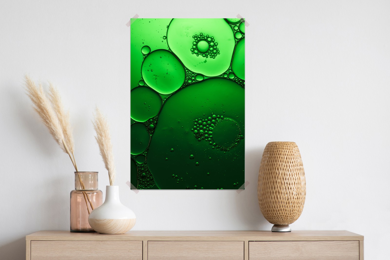 Entdecken Sie eine lebendige abstrakte Komposition aus grünen Blasen und flüssigen Texturen, die jedem Raum einen modernen Blickfang verleiht.