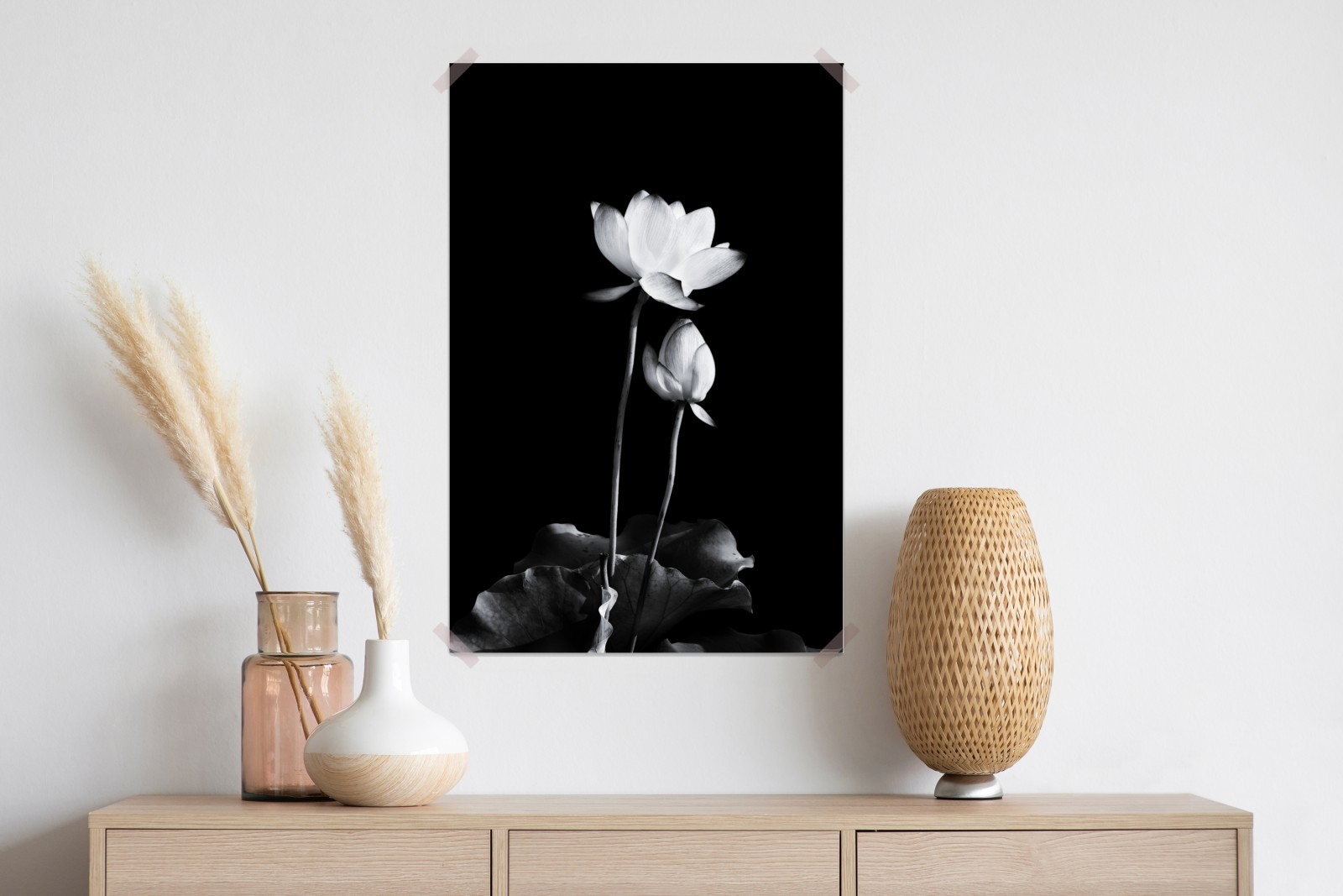 Eleganter schwarzweiß-lotus bringt Ruhe und minimalistischen Charme in jeden Raum.