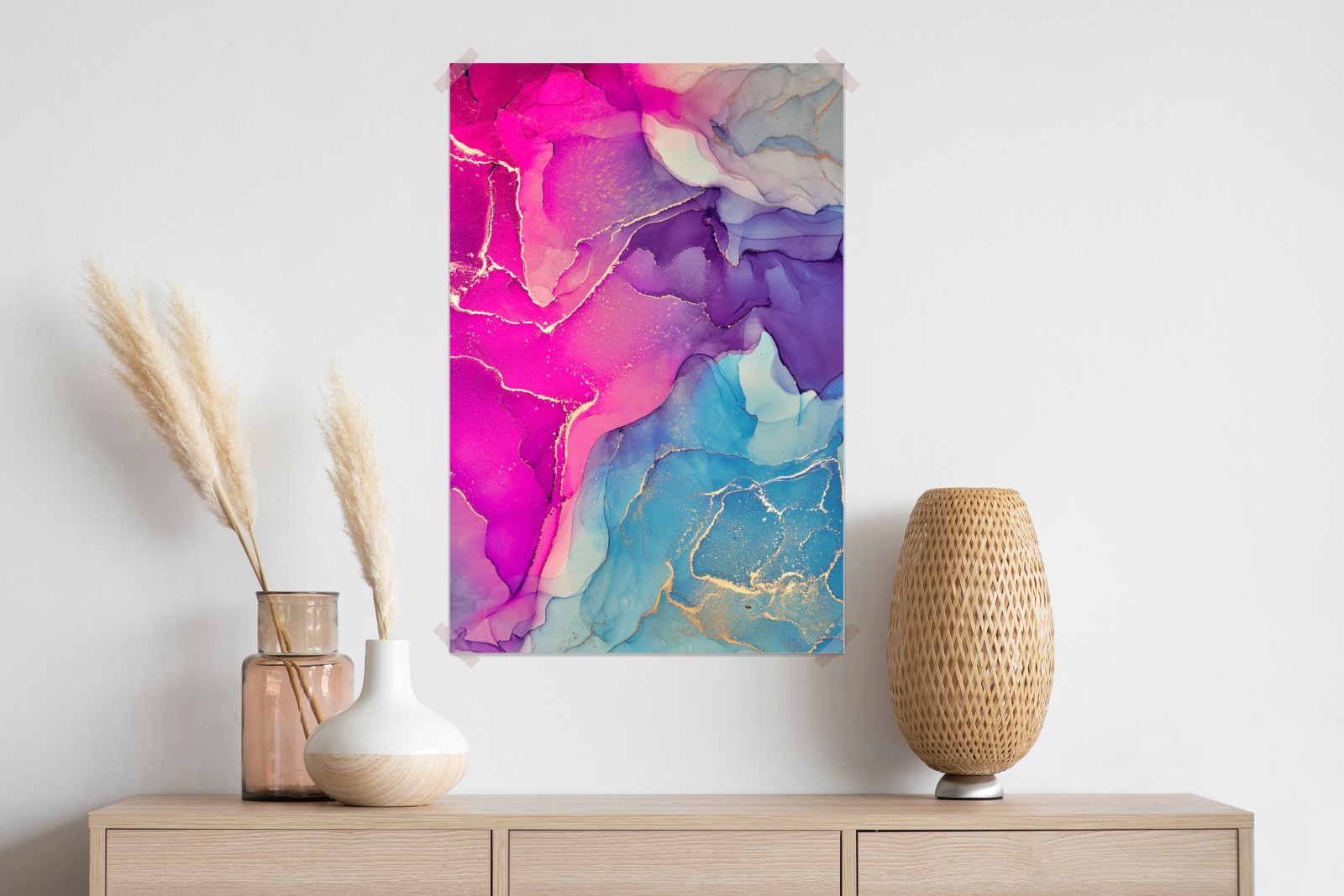 Poster Leuchtende marmorierte komposition aus alkohol-tinte