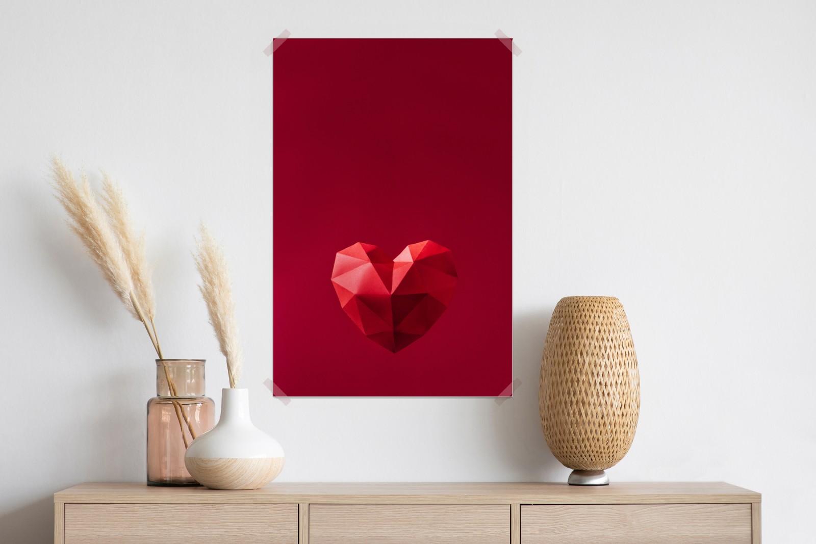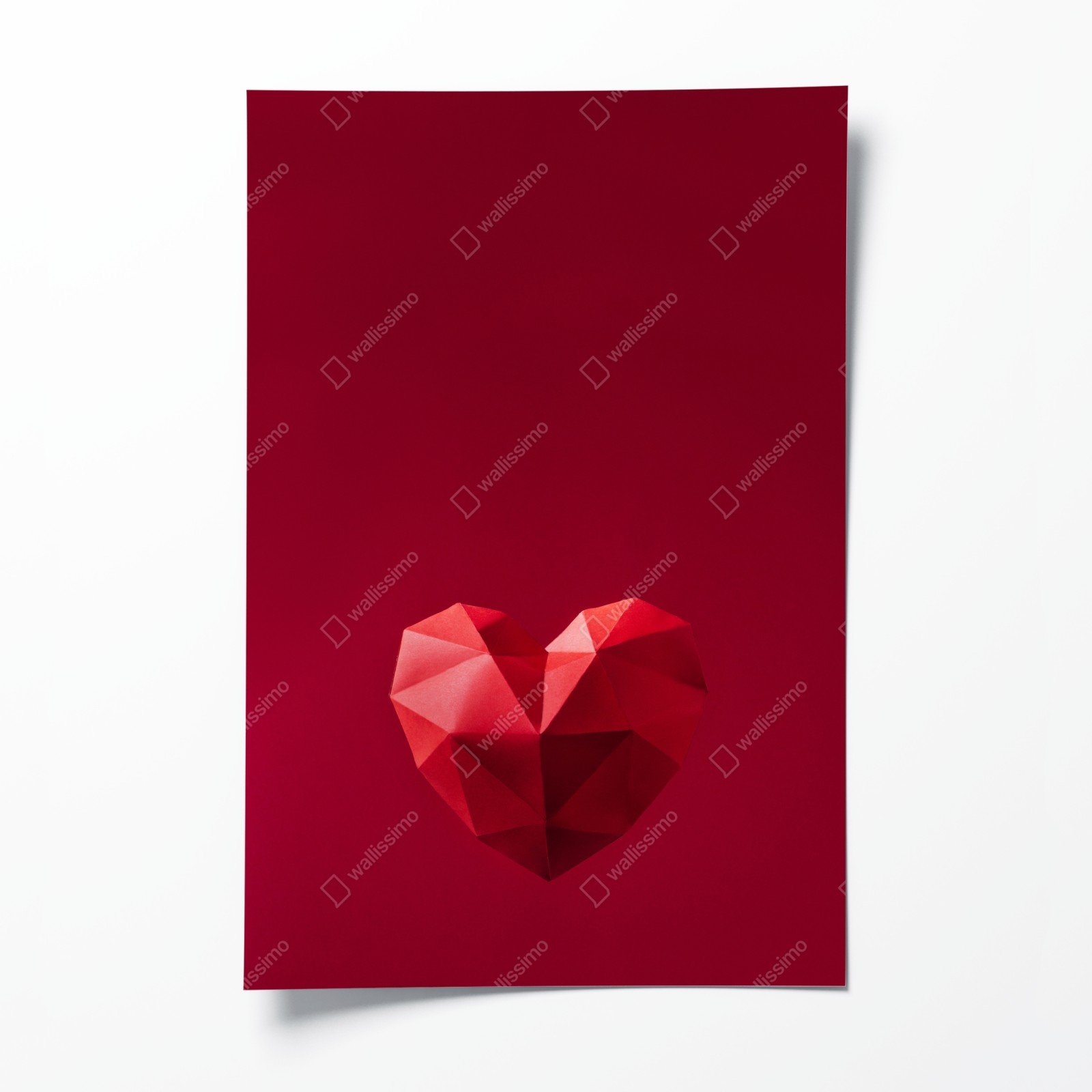 Verleihen Sie Ihrem Raum romantischen Flair mit einem markanten geometrischen roten Papierherz vor minimalistischem Hintergrund.