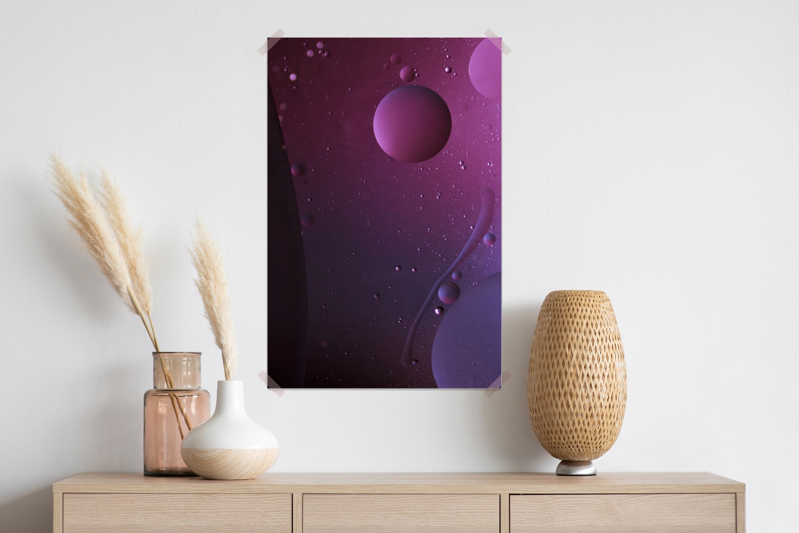 Verleihen Sie Ihren Räumen moderne Mystik mit wirbelnden violetten Sphären und kosmischen Strukturen, ideal für zeitgenössische Einrichtungen.