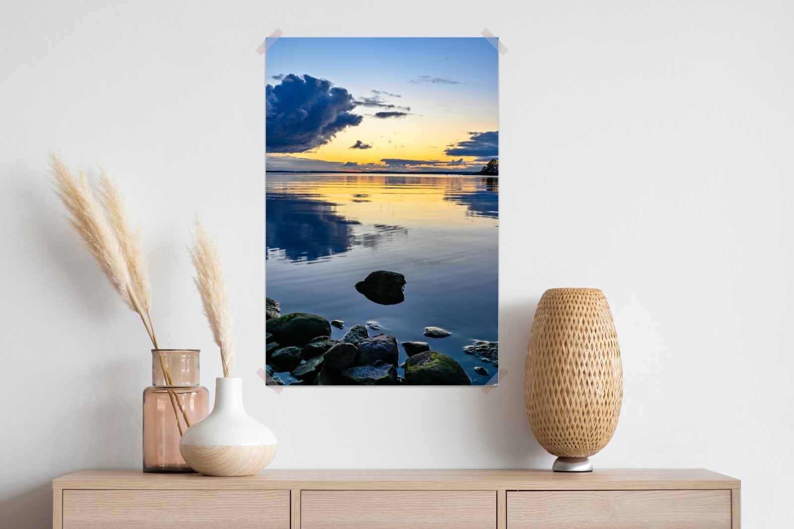Poster Ruhige küstenlandschaft bei sonnenuntergang