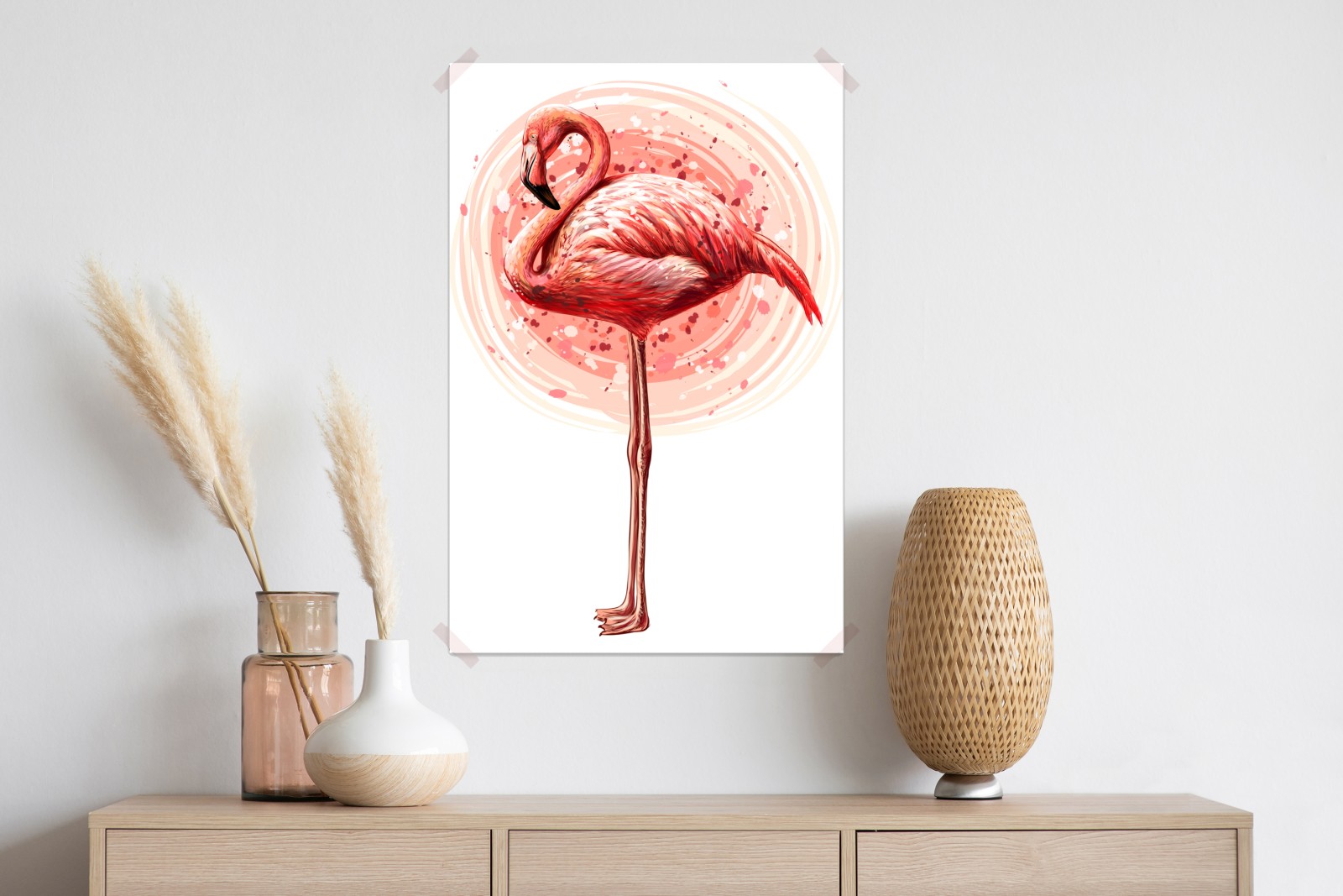 Bringen Sie tropisches Flair in den Raum mit dieser lebendigen Flamingo-Aquarell-Illustration, ideal für Kinderzimmer und moderne Wohnräume.