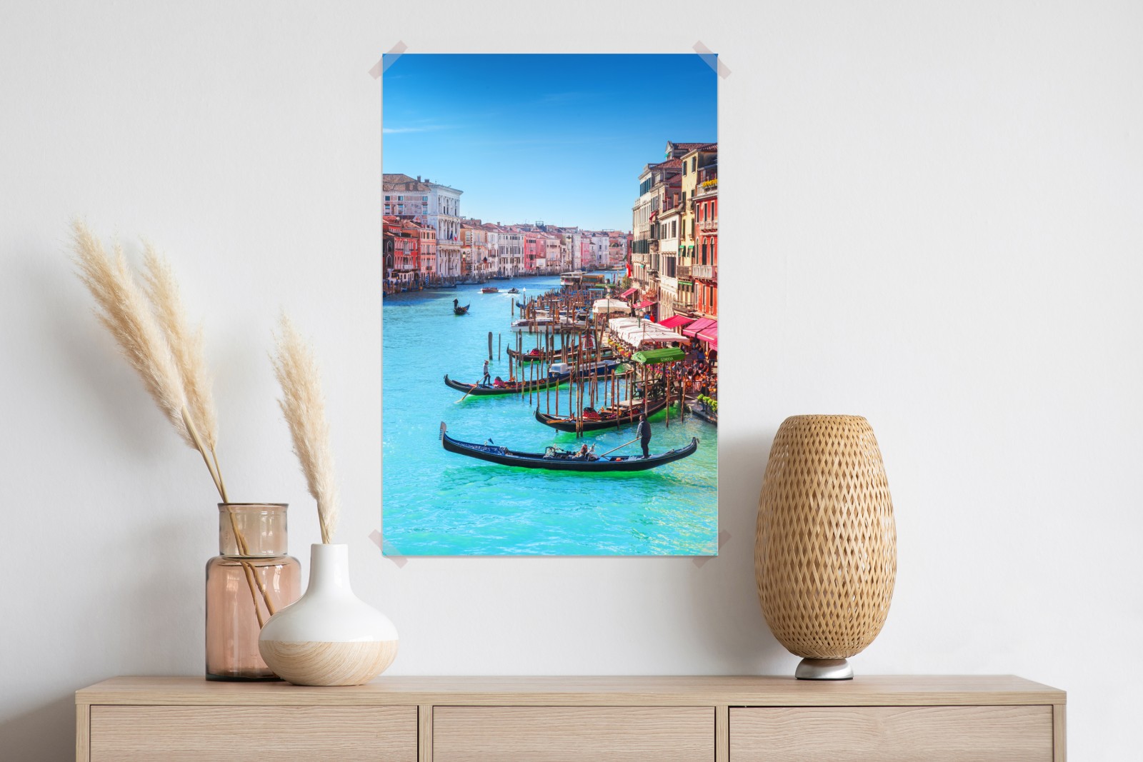 Bringen Sie die lebhaften Kanäle von Venedig in Ihr Zuhause mit dieser sonnigen Stadtansicht, die Gondeln, bunte Gebäude und türkisfarbenes Wasser zeigt.