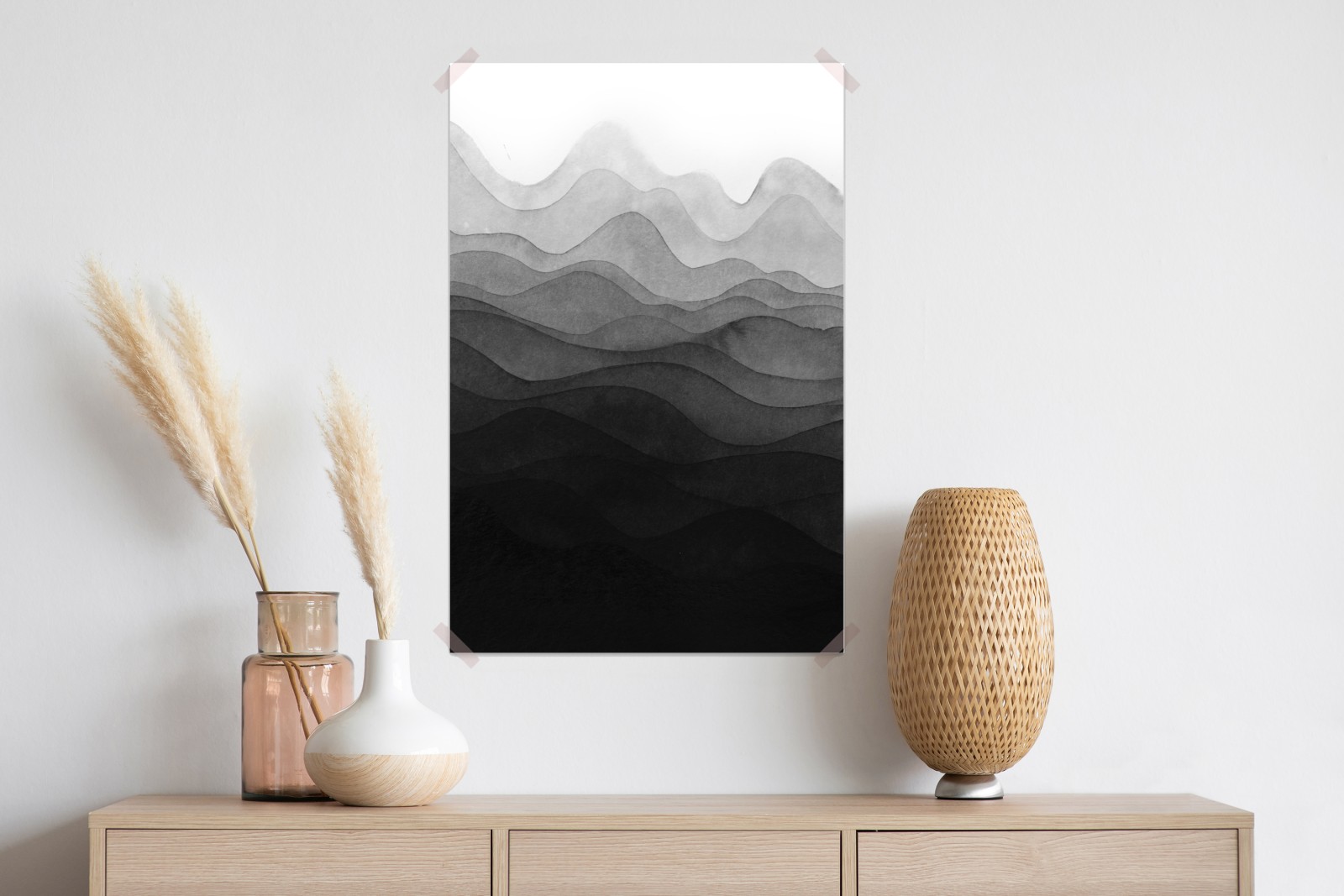 Verleihen Sie Ihrem Raum Ruhe mit diesem monochromen, geschichteten Bergmotiv, ideal für minimalistische Einrichtung.