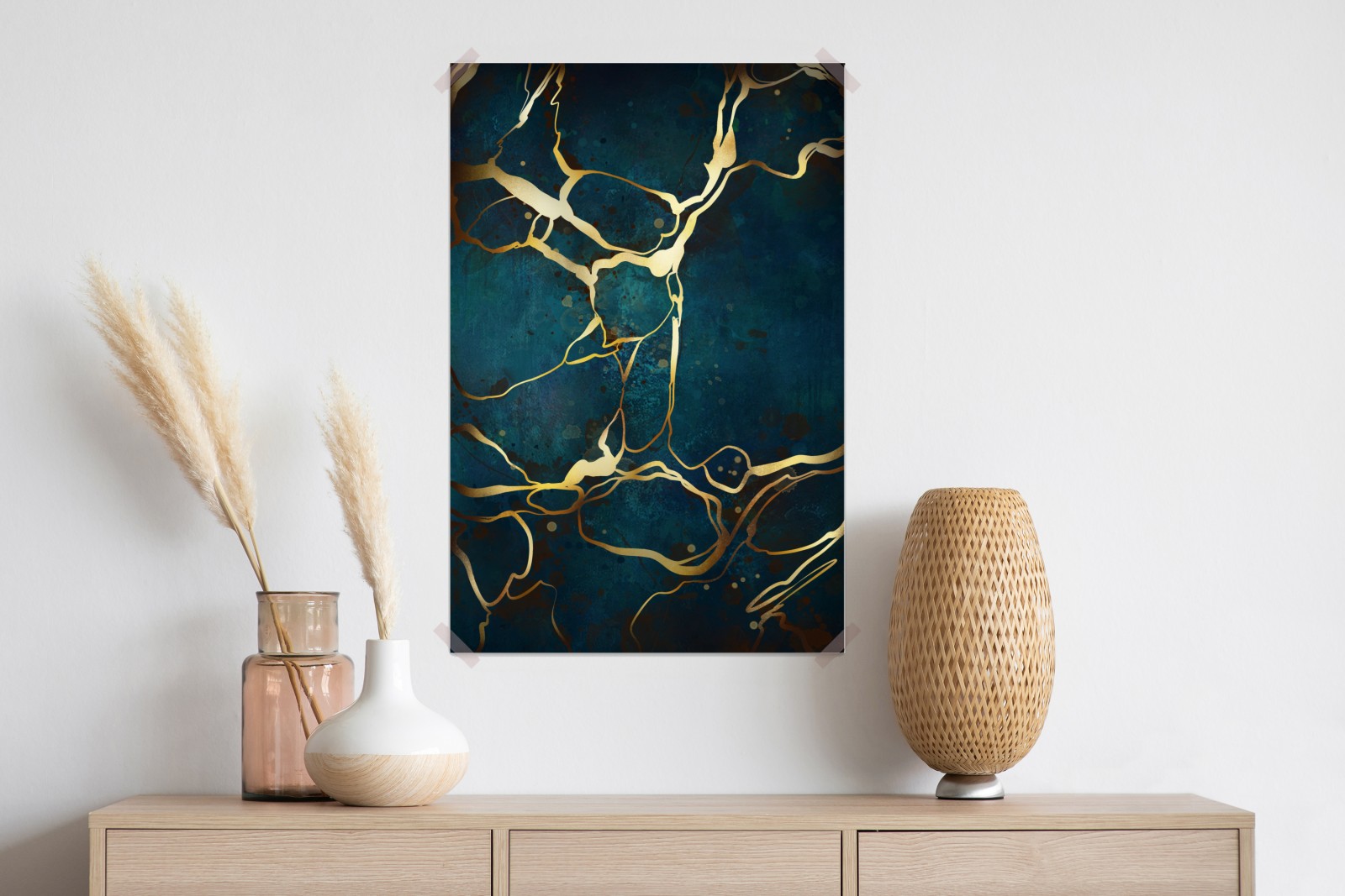 Verleihen Sie Ihrem Raum Luxus mit intensiven türkisfarbenen Texturen und schimmernden goldenen Adern für eine moderne, elegante Atmosphäre.