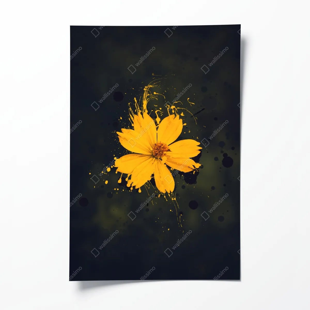 Verleihen Sie Ihrem Raum kontrastreichen botanischen Charme mit dieser leuchtenden Darstellung einer gelben Blüte, ideal für moderne Einrichtungen.