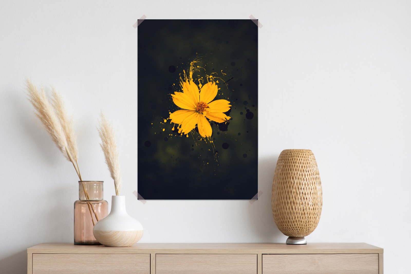Poster Leuchtende gelbe blüte auf dunklem hintergrund