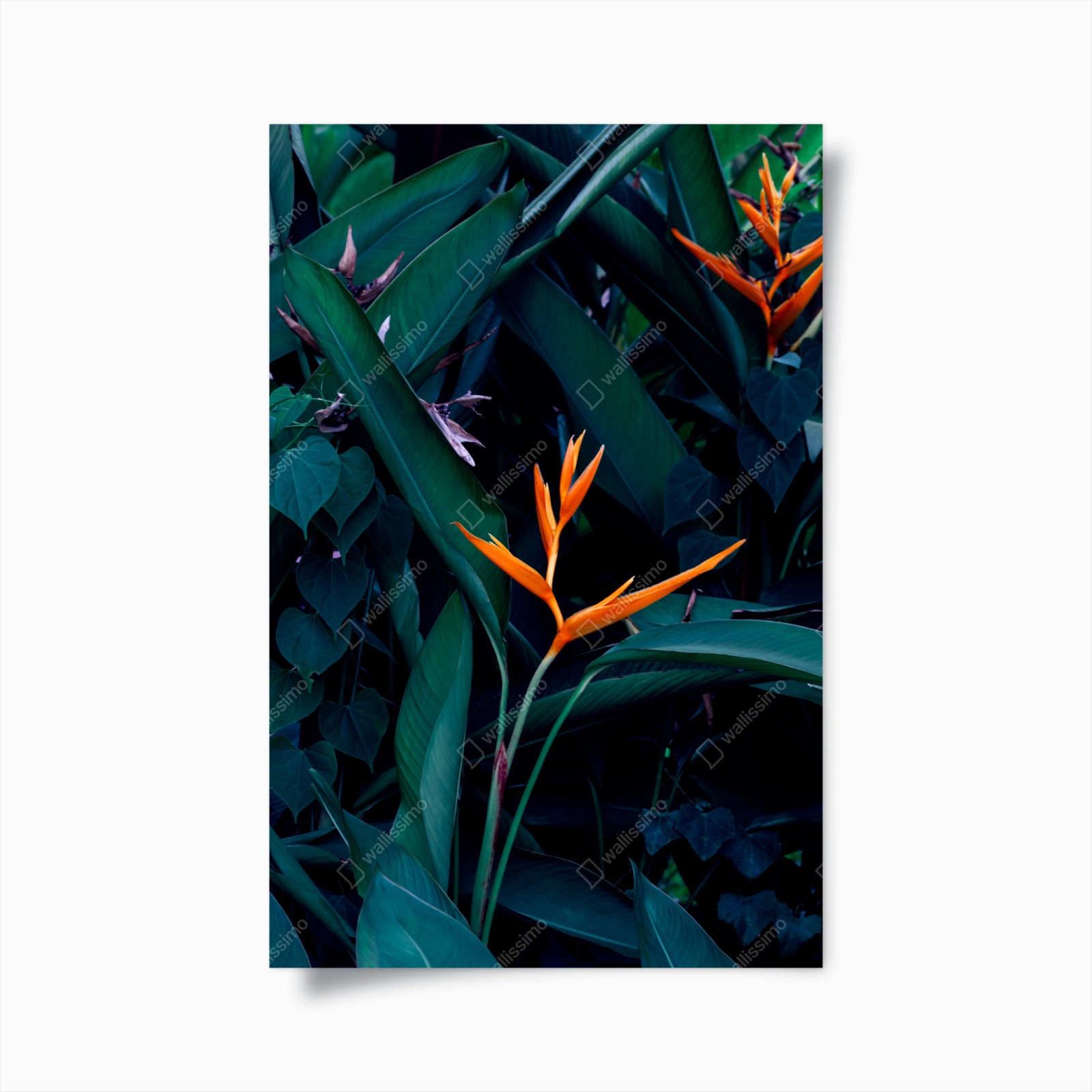 Poster Leuchtende strelitzie vor tiefgrünen blättern