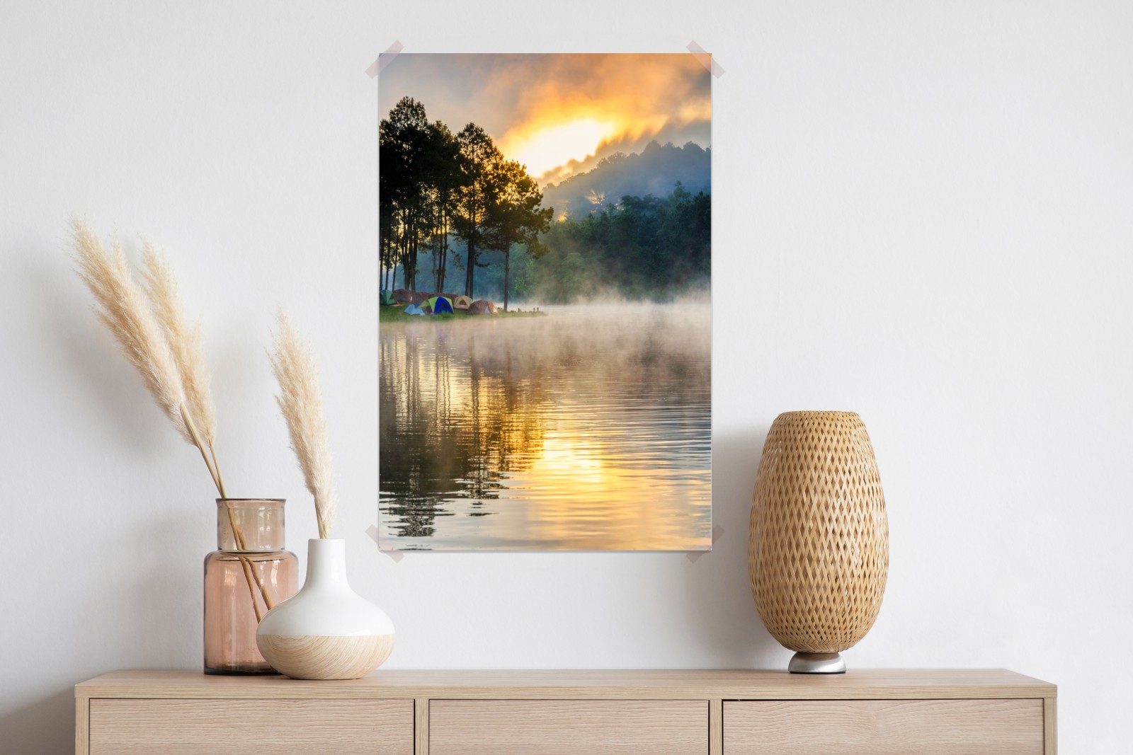 Poster Morgendlicher nebel am Pang Oung see, Mae Hong Son