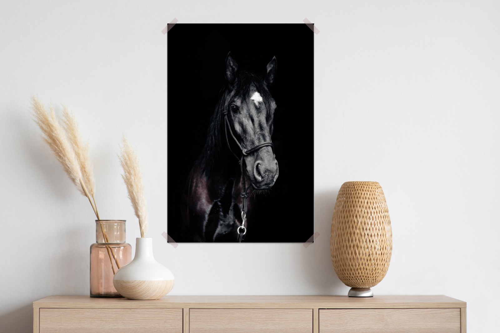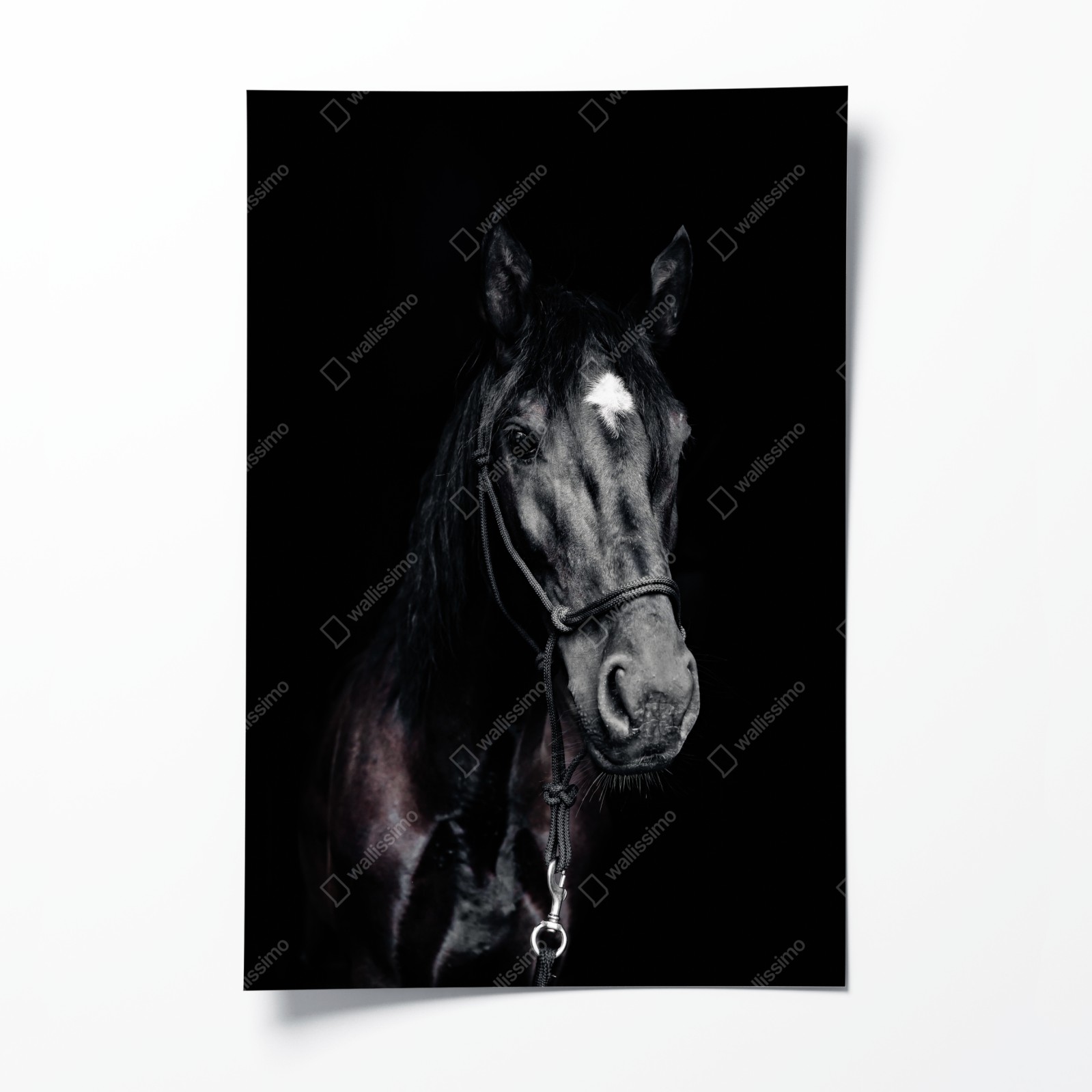 Elegantes Porträt eines Pferdes mit dramatischer Beleuchtung, das jedem Raum eine zeitlose Atmosphäre verleiht.