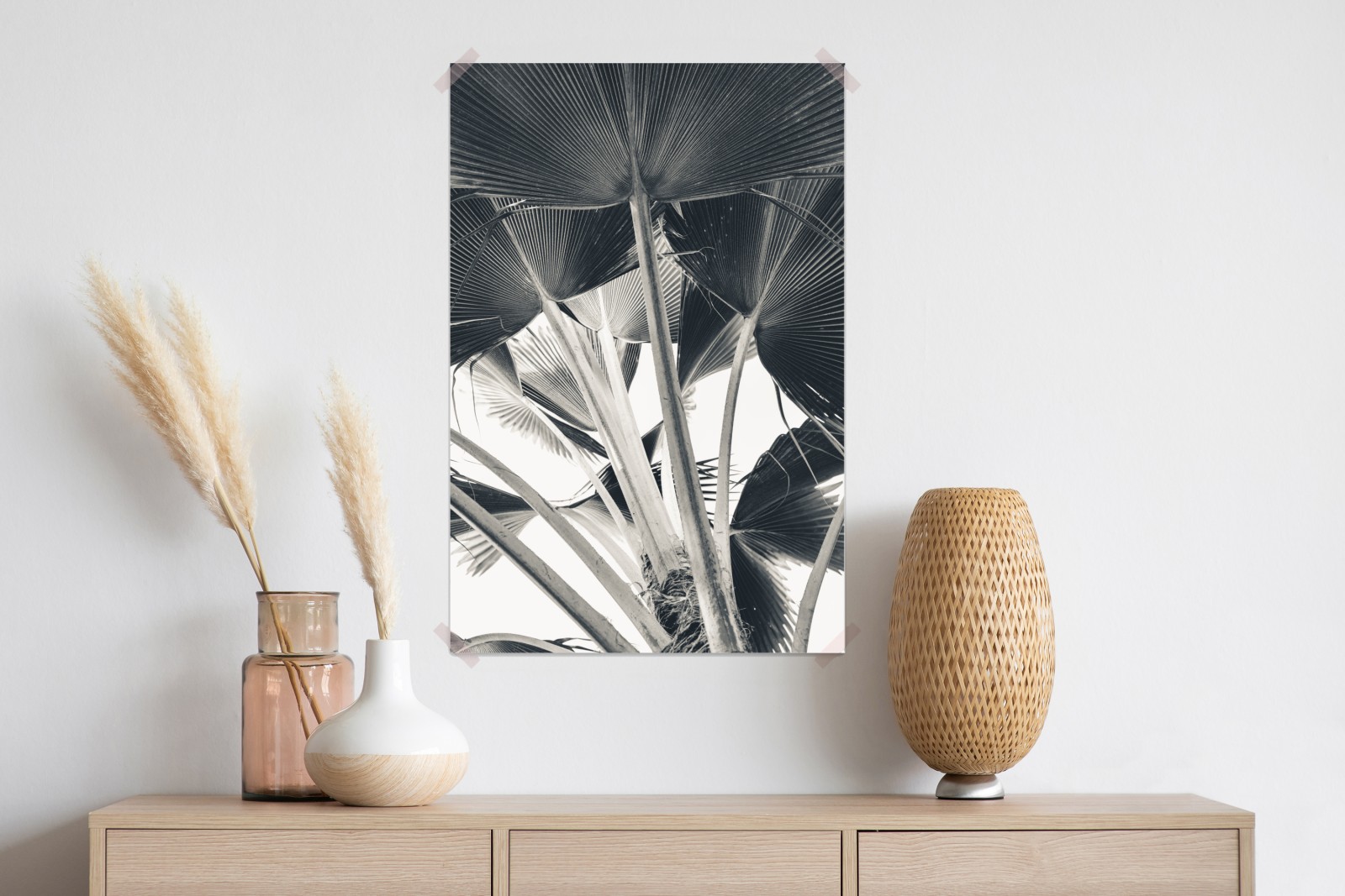Bringen Sie tropische Textur und ruhige botanische Ästhetik in Ihr Zuhause mit dieser eindrucksvollen monochromen Aufnahme von Bananenblättern, ideal für moderne und biophile Räume.