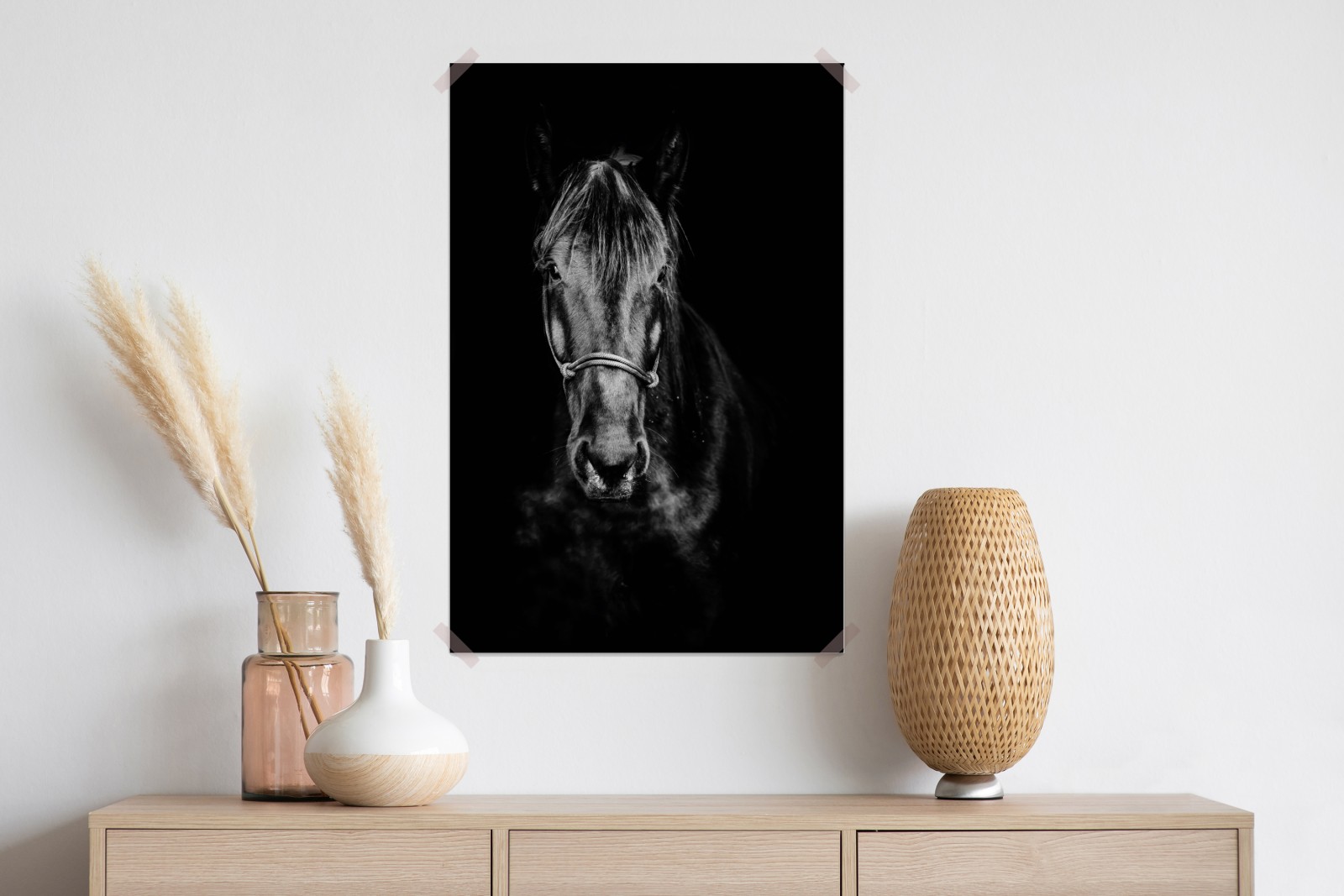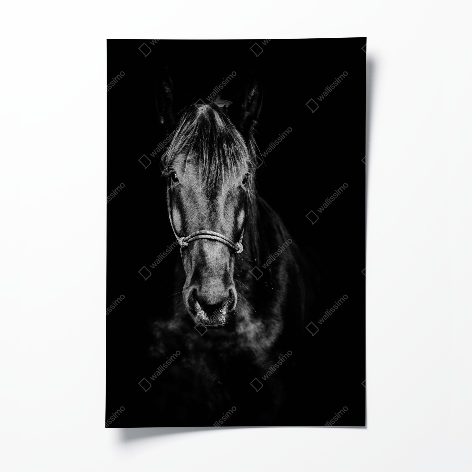 Verleiht Räumen eine elegante, dramatische Atmosphäre mit einem monochromen Porträt eines Pferdes.