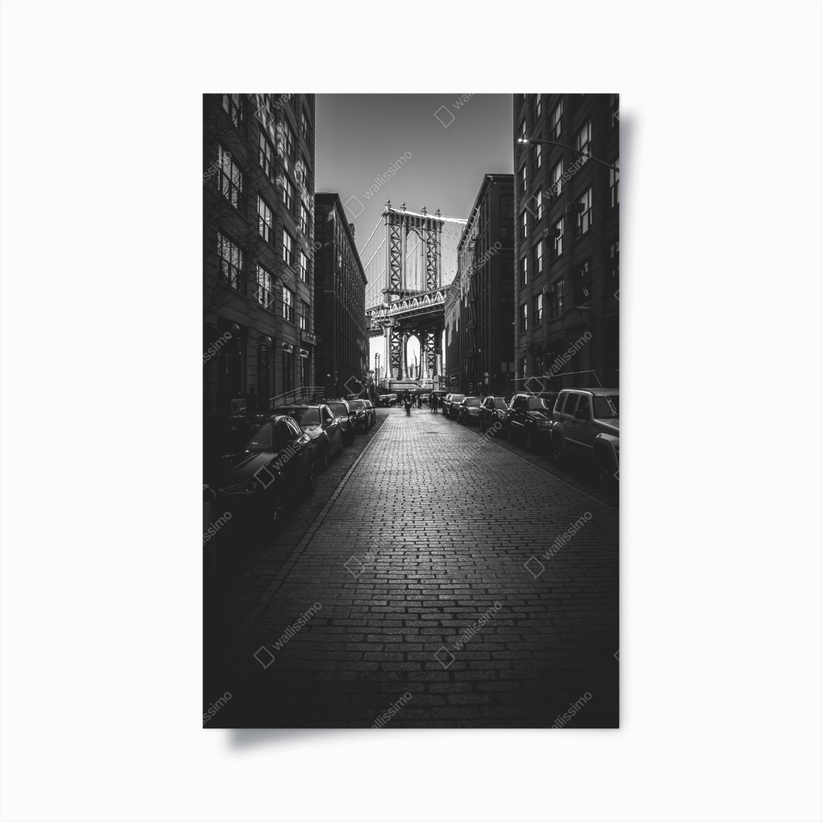 Poster Manhattan Bridge im rahmen einer gepflasterten straße