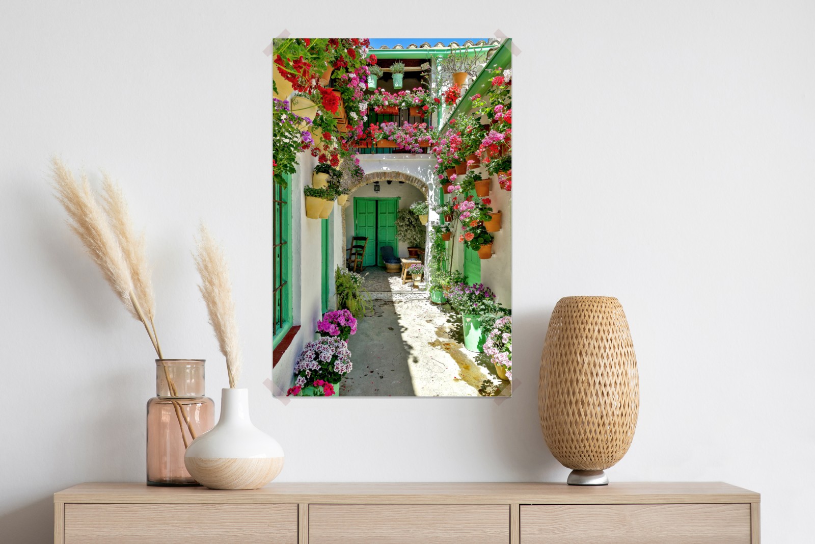 Bringen Sie den Charme eines sonnigen Innenhofs mit bunten Topfblumen und üppigem Grün in Ihr Zuhause.