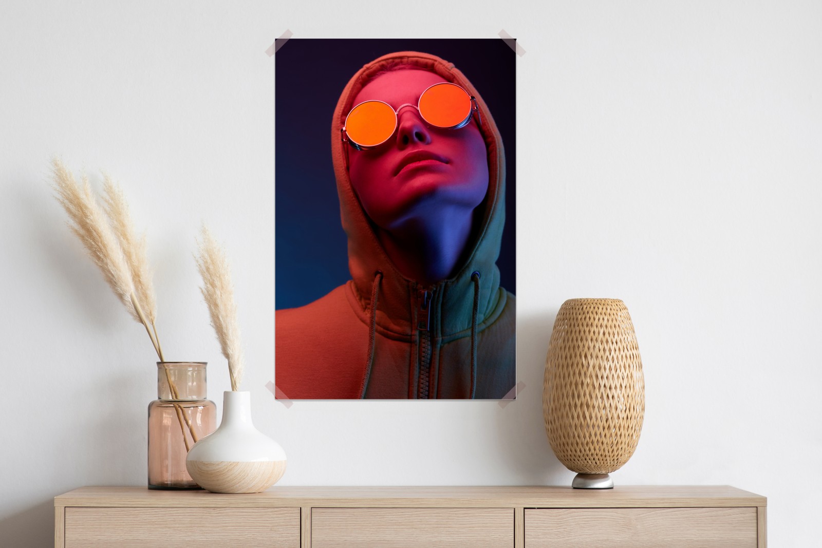 Poster neon-porträt mit runden sonnenbrillen – Wallnifity®