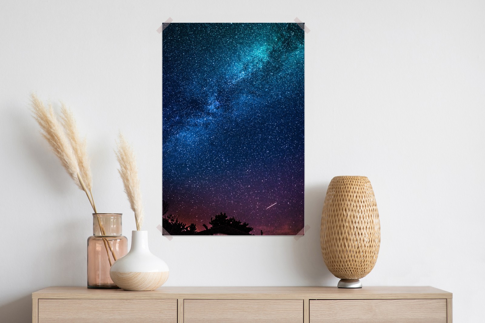 Poster tiefblauer nachthimmel mit milchstraße und sternschnuppe – Wallnifity®