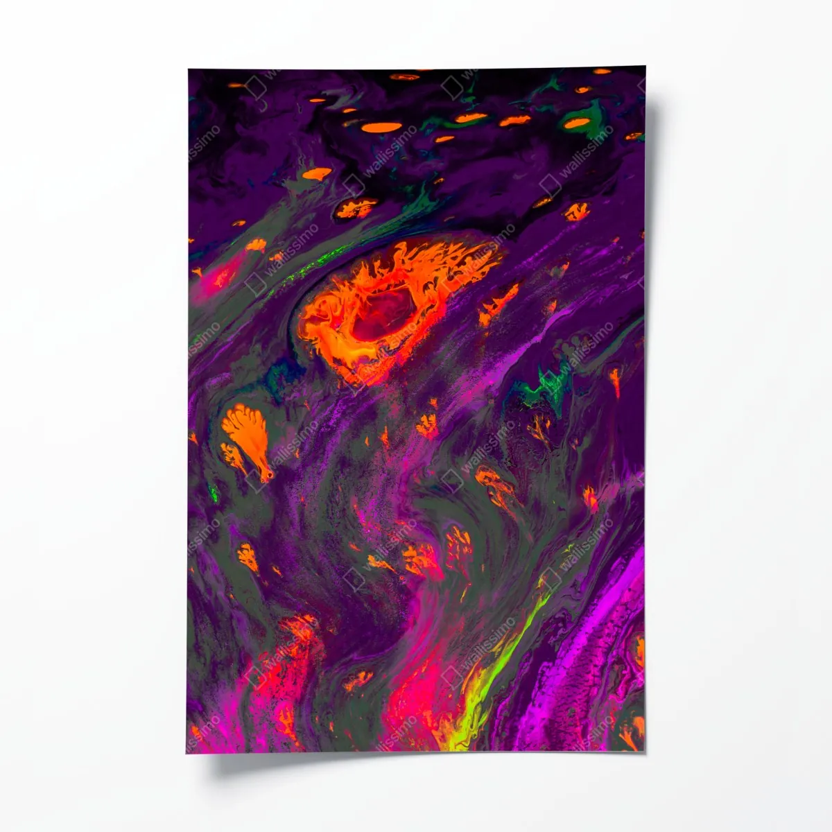 Bringen Sie traditionelle Ebru-Marmorierung ins Zimmer mit intensiven violetten und orangen Schattierungen für einen lebendigen Blickfang.