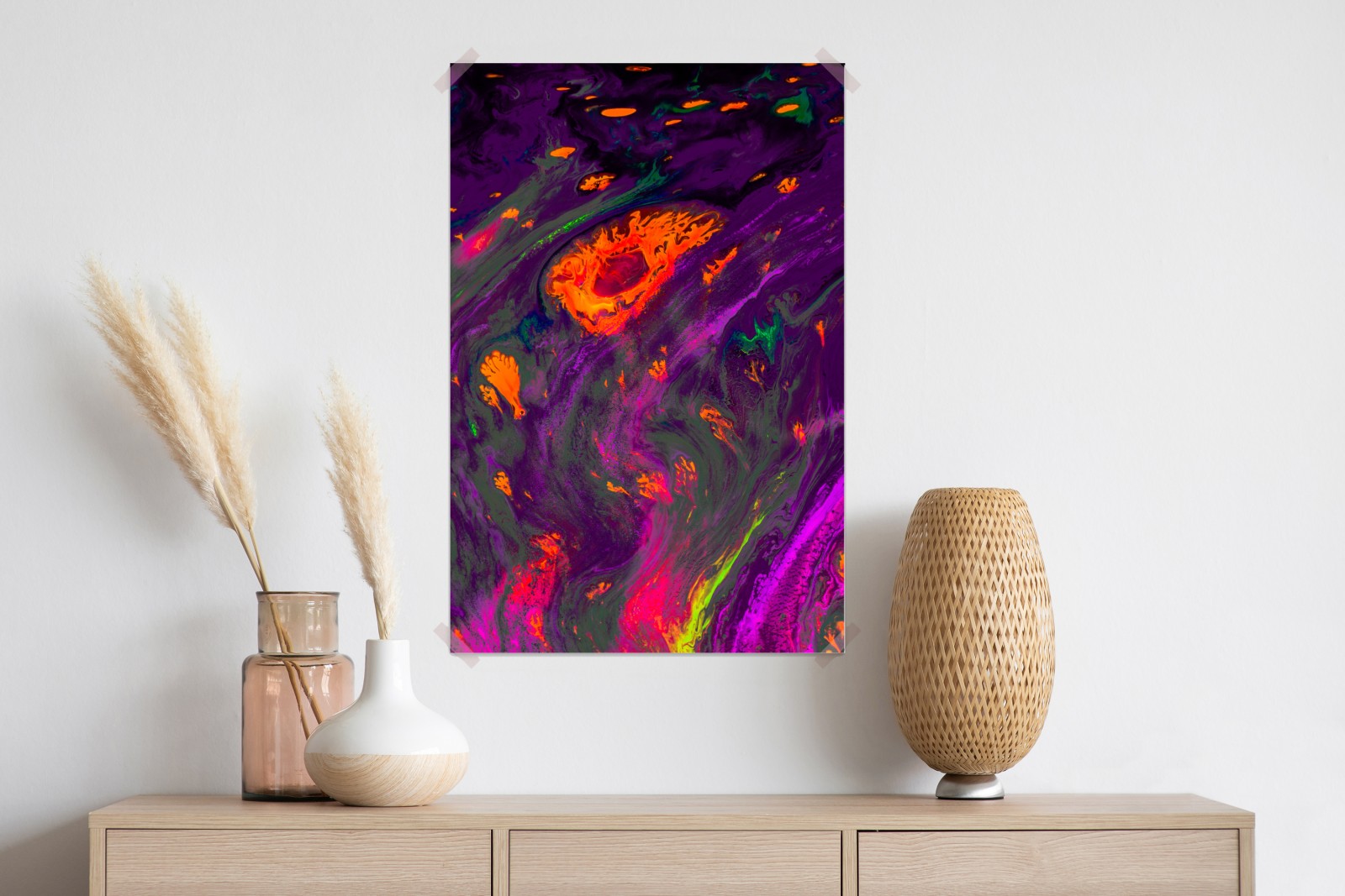 Poster Traditionelle ebru abstrakte marmormuster in lila und orange