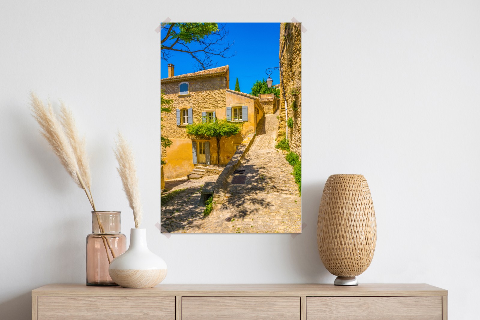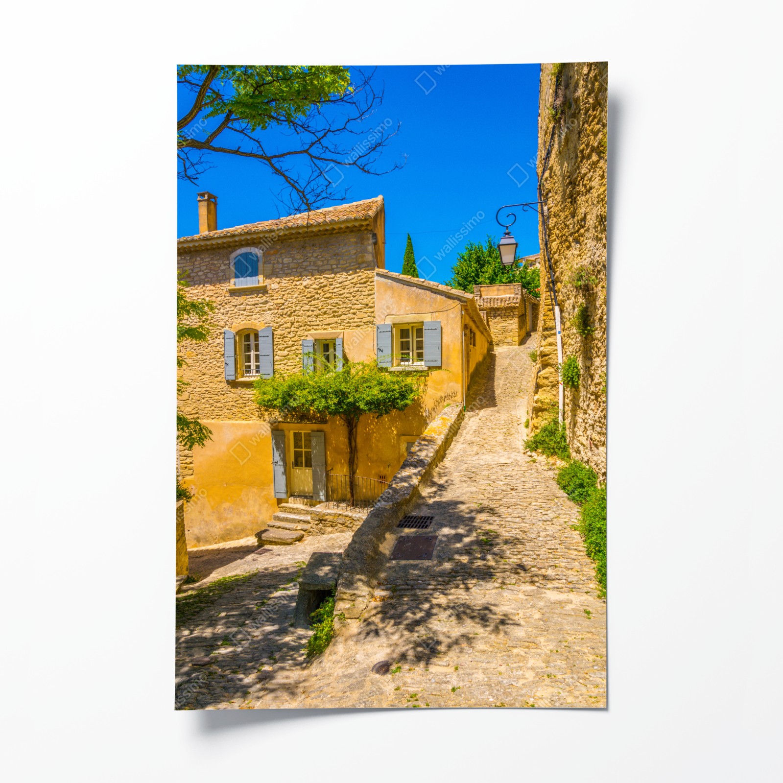 Bringen Sie mediterrane Wärme an Ihre Wand mit dieser sonnigen kopfsteinpflastergasse, ideal für ein gemütliches, rustikales Ambiente.
