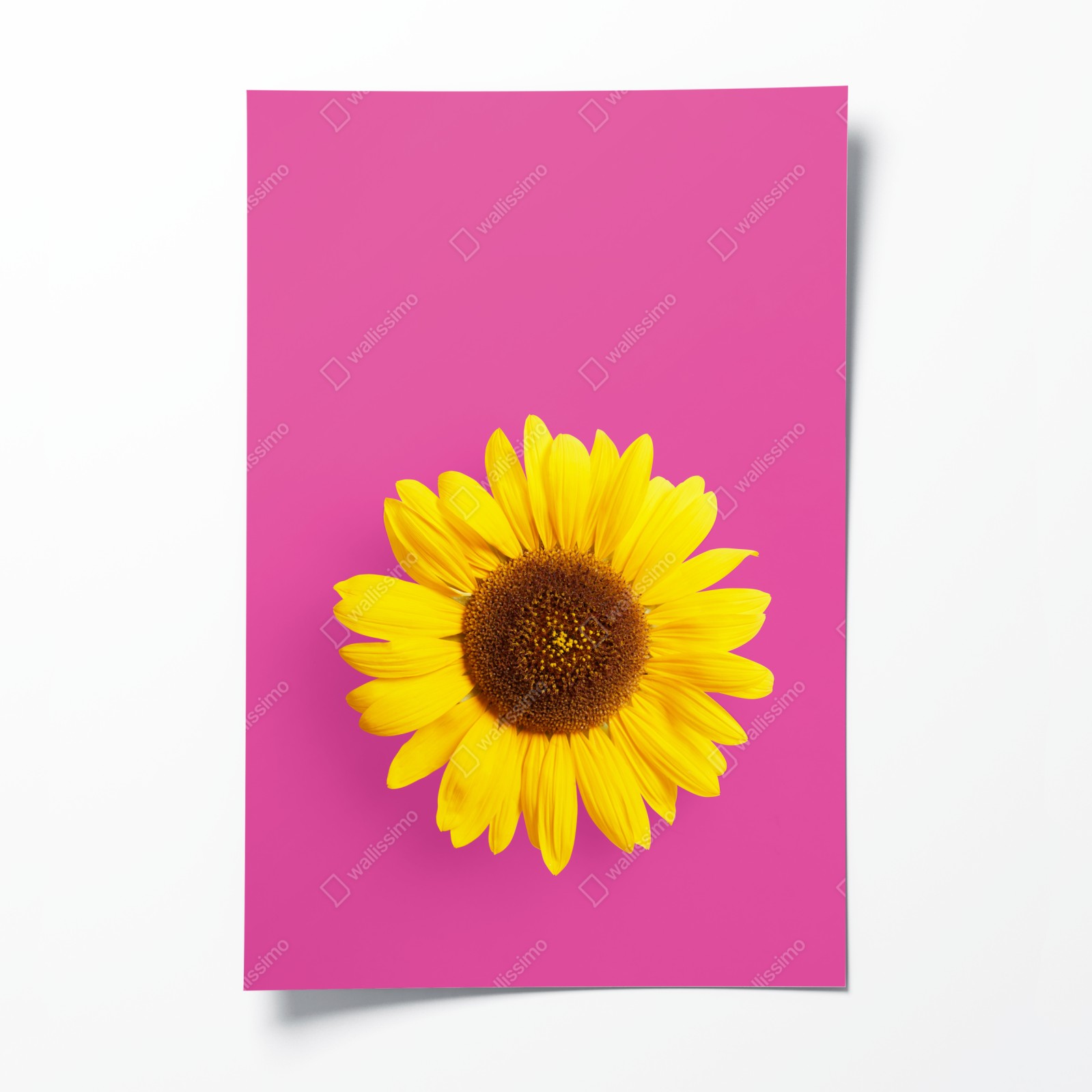 Leuchtende Sonnenblume auf rosa Hintergrund verleiht jedem Raum warme, fröhliche Stimmung.