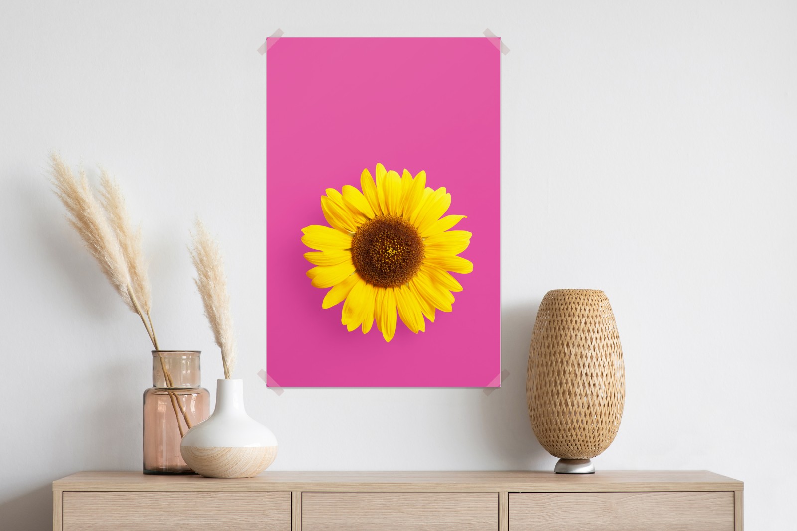 Poster Leuchtende sonnenblume auf rosa hintergrund