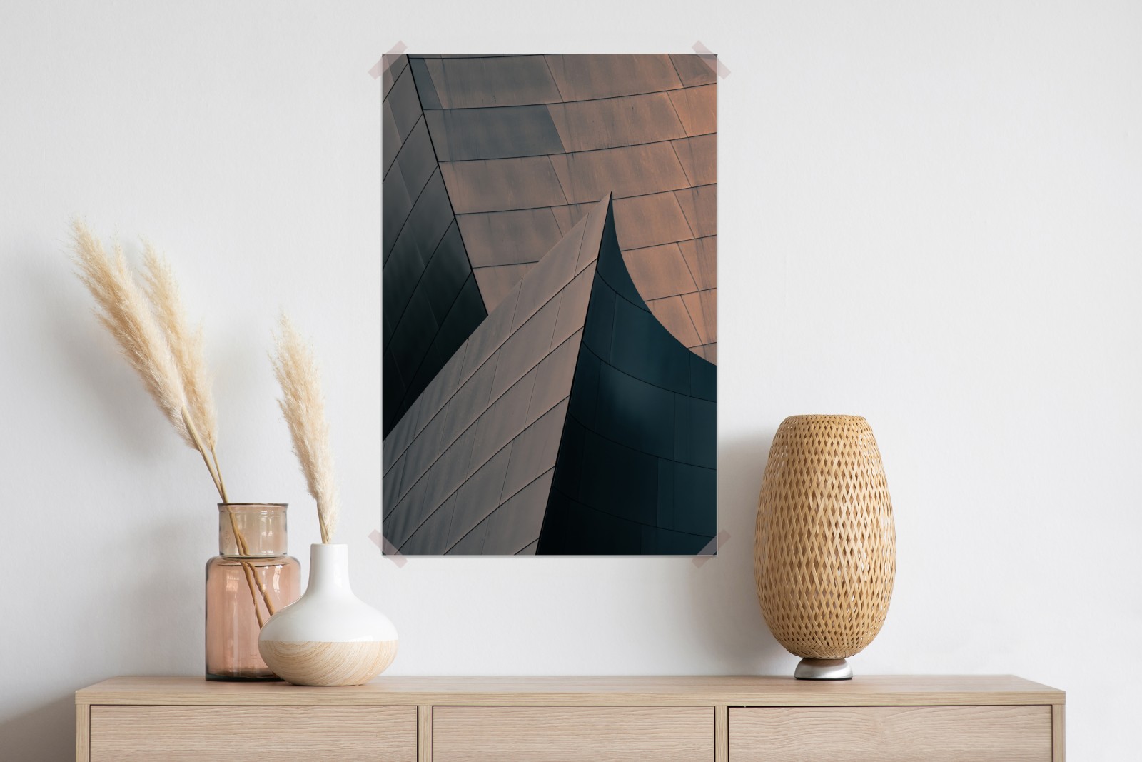 Entdecken Sie markante geometrische Metallformen und gedämpfte Farbtöne, die jedem Raum moderne Eleganz verleihen.