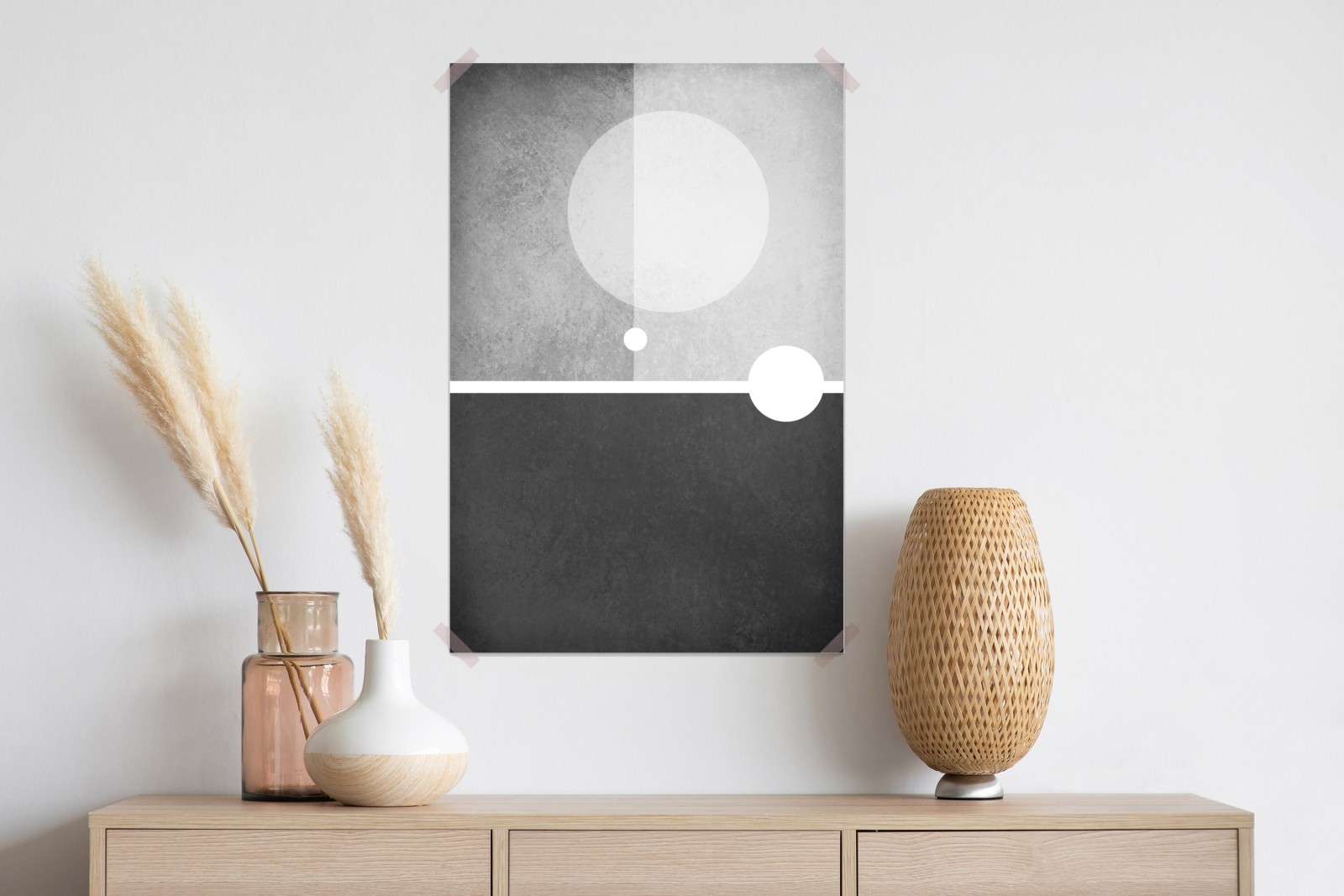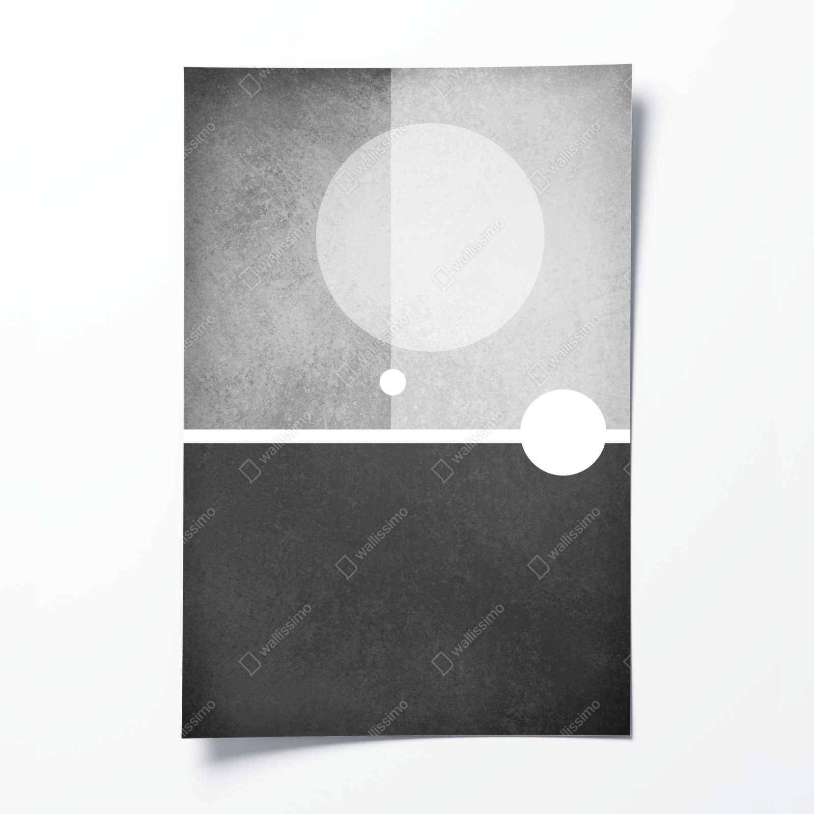 Verleihen Sie Ihrem Raum mit dieser minimalistischen geometrischen Komposition in beruhigenden Grautönen modernen Charakter.