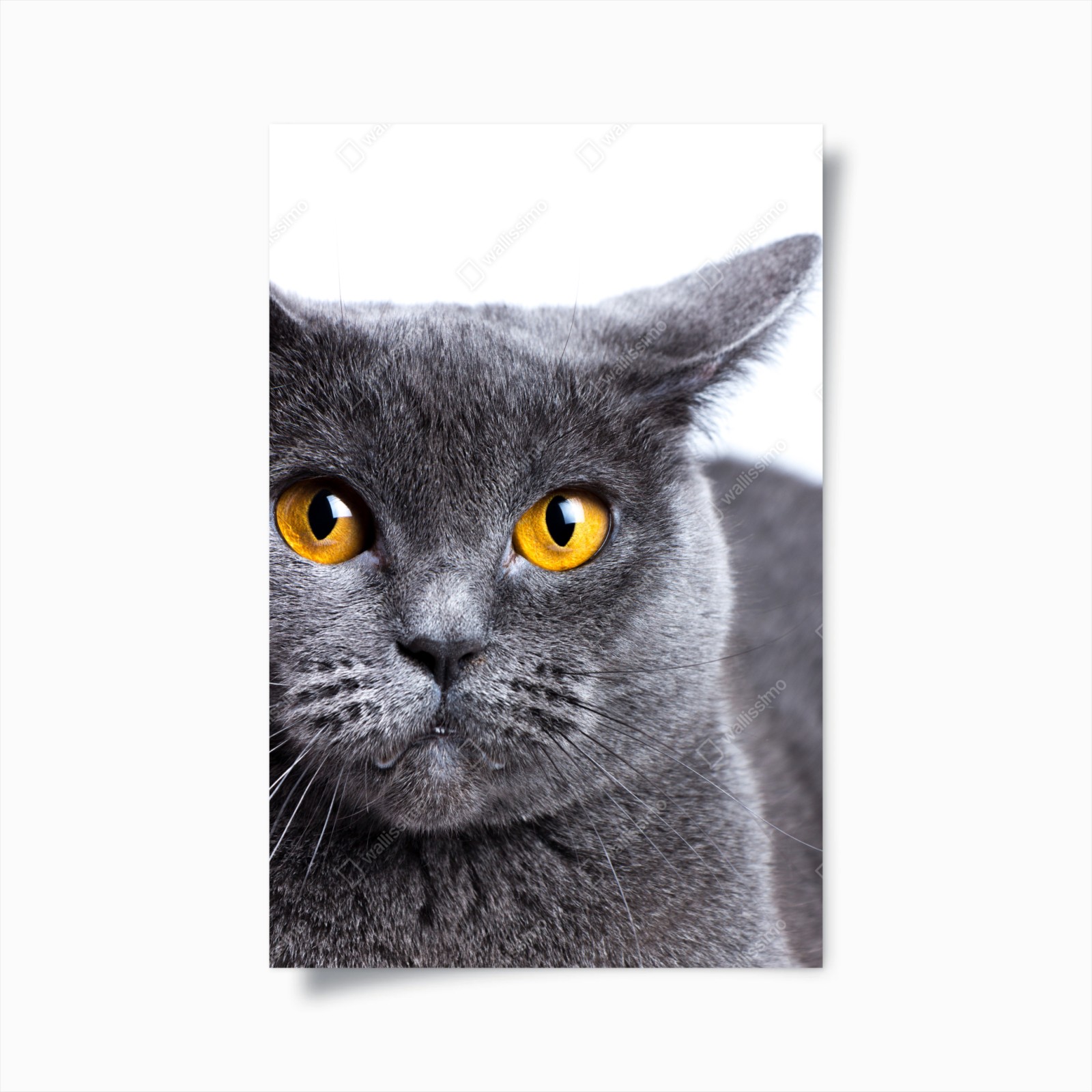 Poster Ausdrucksstarkes porträt einer grauen katze mit goldenen augen