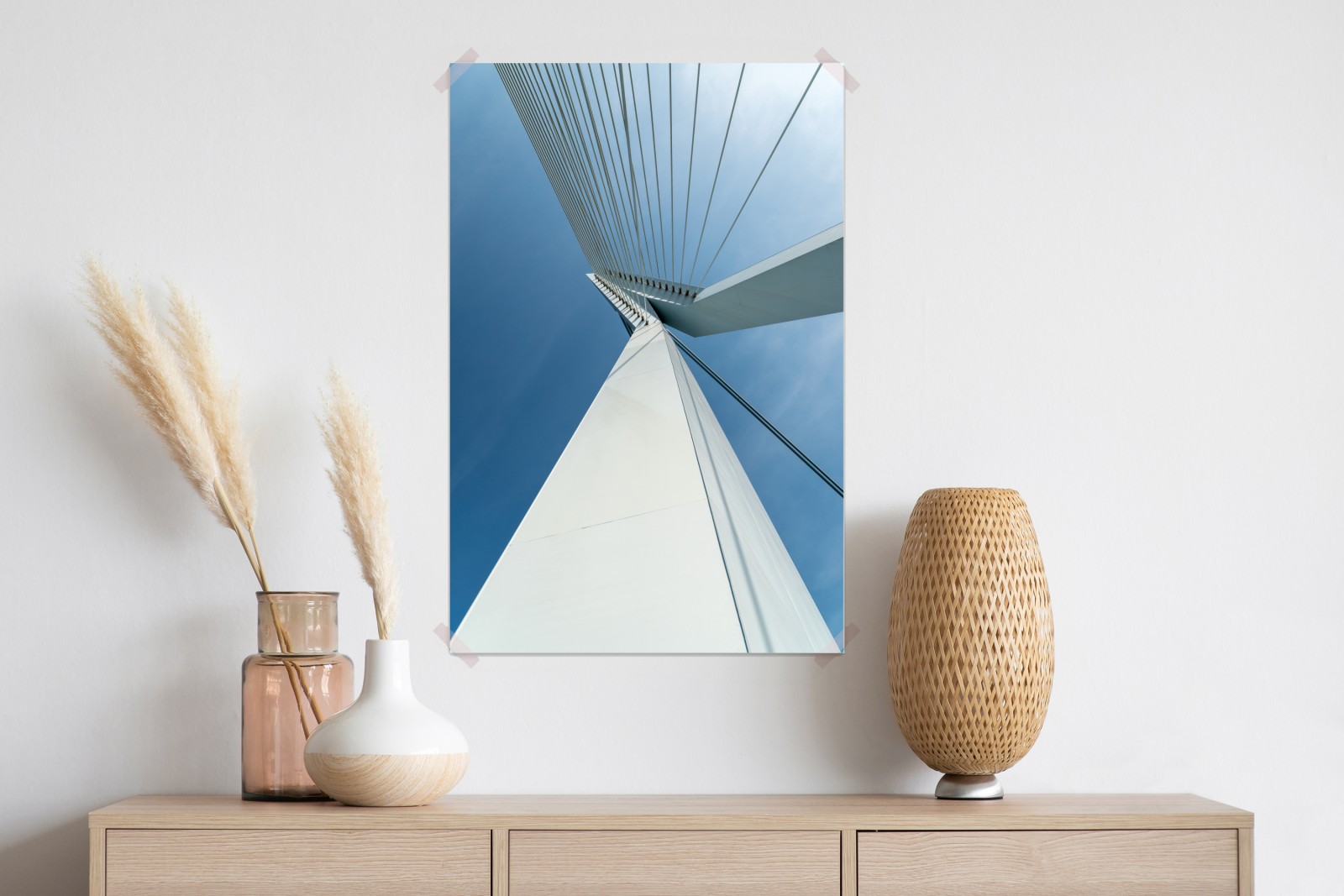 Verleihen Sie Ihrem Raum Ausdruck mit diesem modernen Blick auf einen Brückenpylon, bei dem klare Geometrie und beruhigender blauer Himmel einen architektonischen Fokus schaffen.