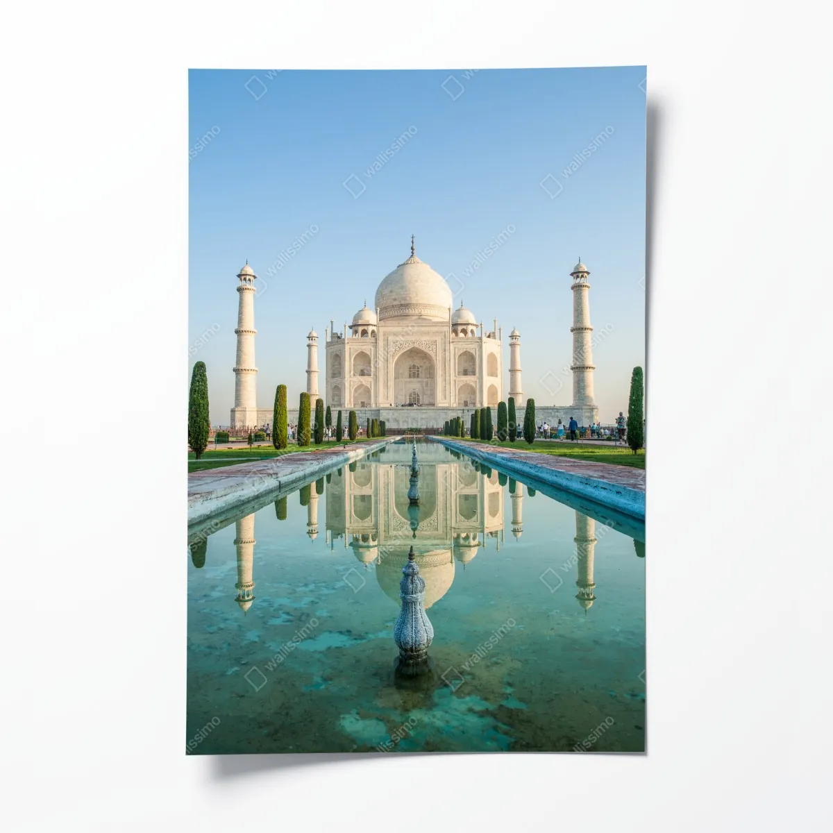Poster Taj Mahal spiegelung im morgendlichen licht