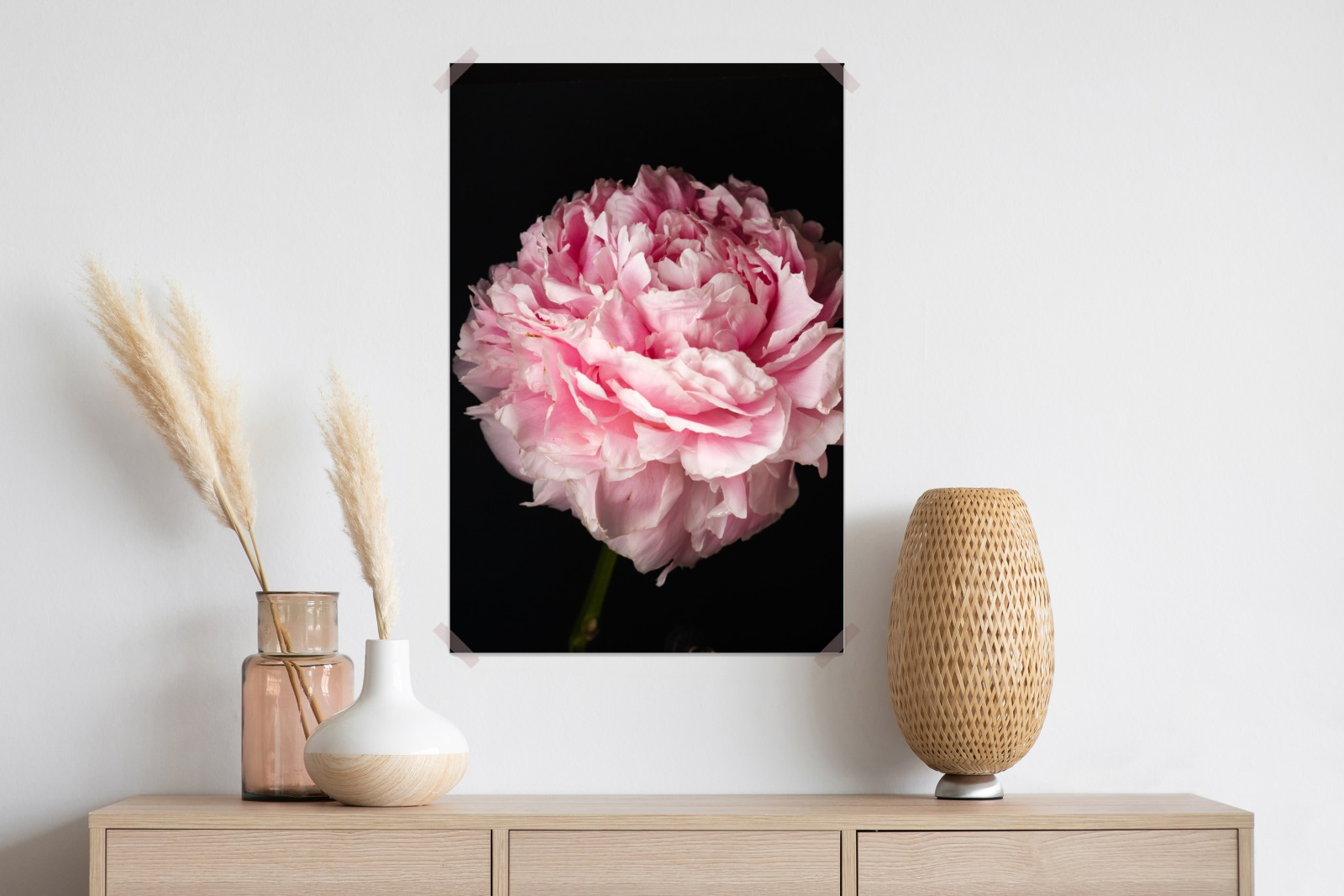 Zarte rosa Pfingstrose in voller Blüte verleiht jedem Raum Eleganz und Ruhe und eignet sich perfekt als Wanddekoration.