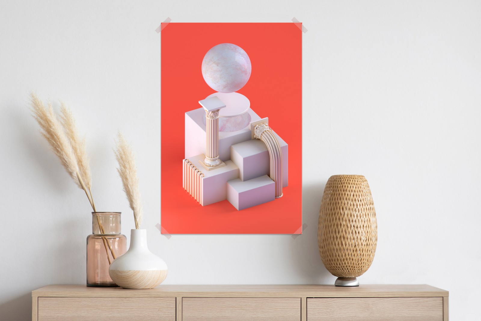 Poster marmorkugel und klassische säulen auf orange – Wallnifity®