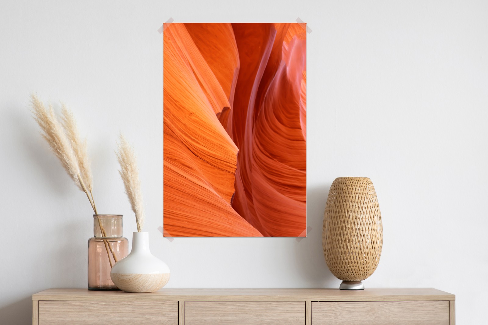 Entdecken Sie die warmen, fließenden Linien des geformten Sandsteins in diesem beeindruckenden abstrakten Landschaftsbild, ideal um jedem Raum natürliche Textur und warme Farbtöne zu verleihen.