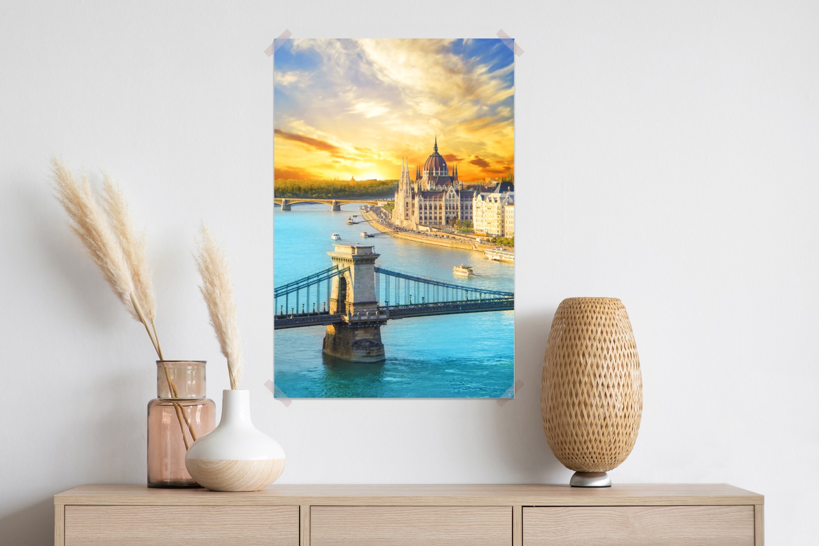 Poster Sonnenuntergang über Budapest und der Kettenbrücke