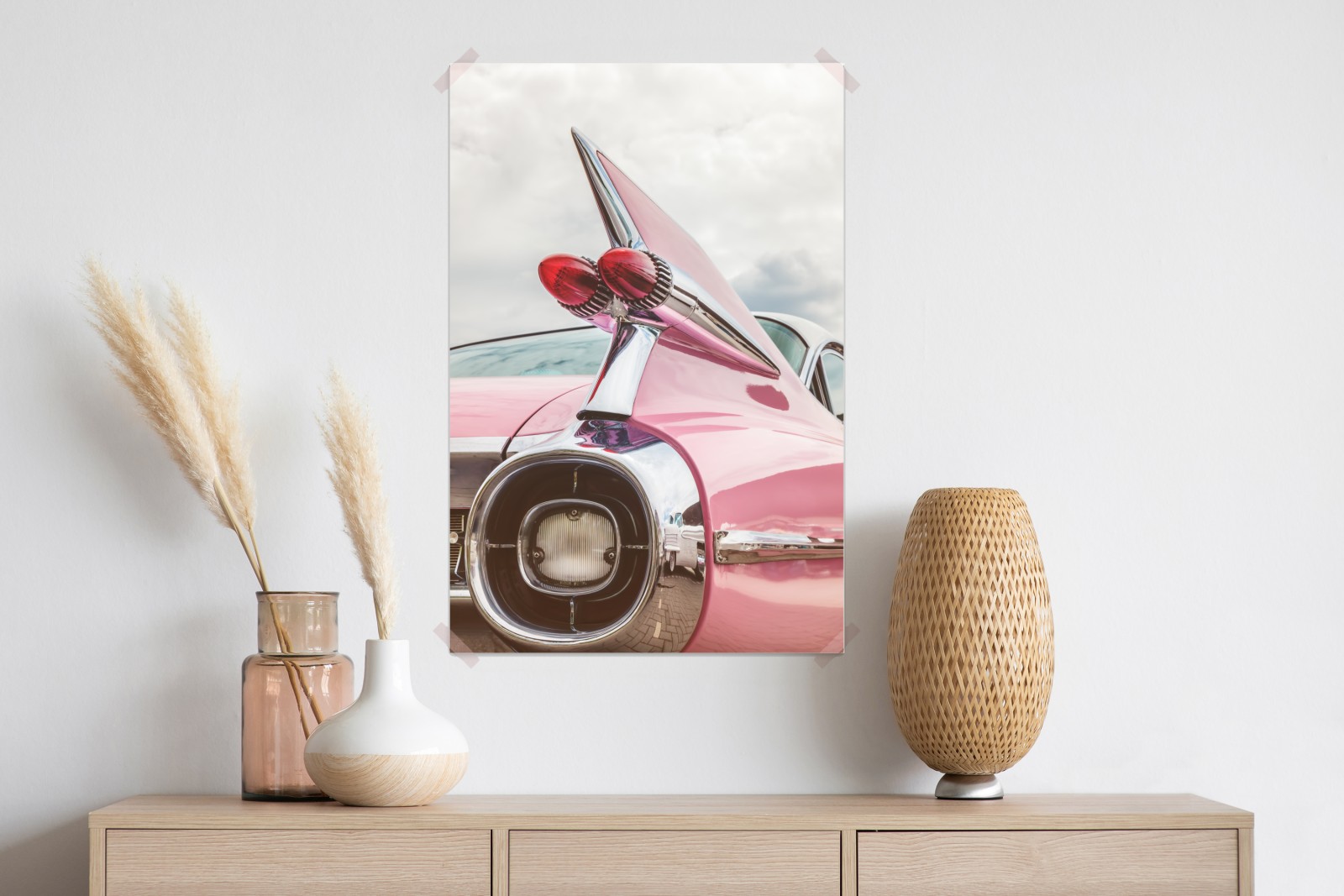 Poster Rosa retro klassisches auto heckflosse
