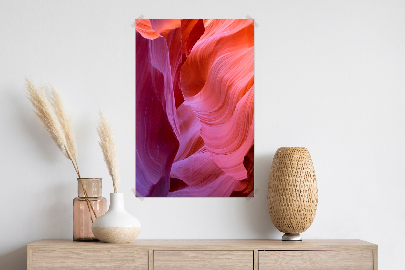 Bringen Sie die fließende Schönheit des Antelope Canyon in Ihren Raum mit diesem lebendigen, sandsteinartigen abstrakten Druck, perfekt um Wärme und Struktur hinzuzufügen.