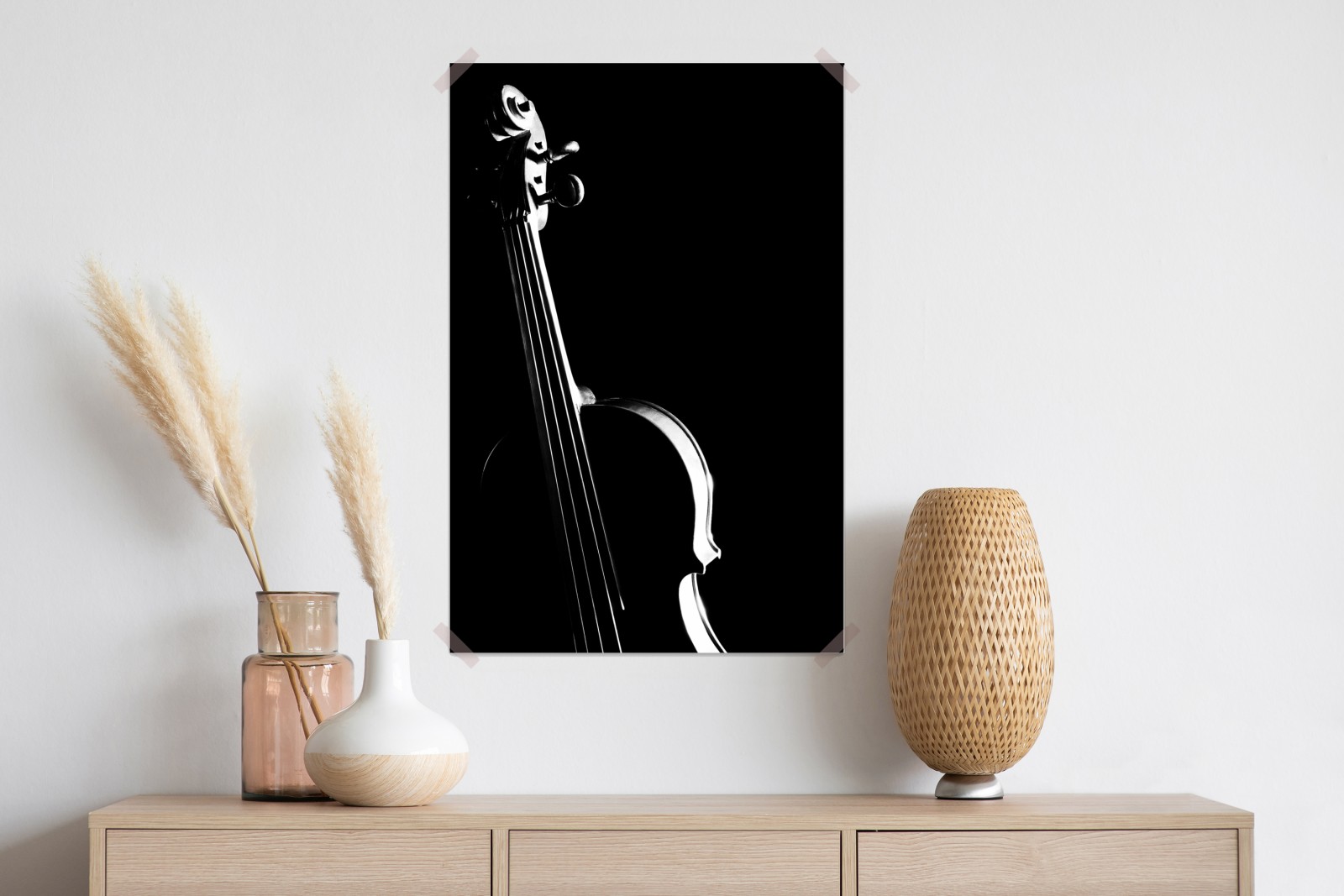 Poster elegante geigensilhouette auf schwarzem hintergrund – Wallnifity®