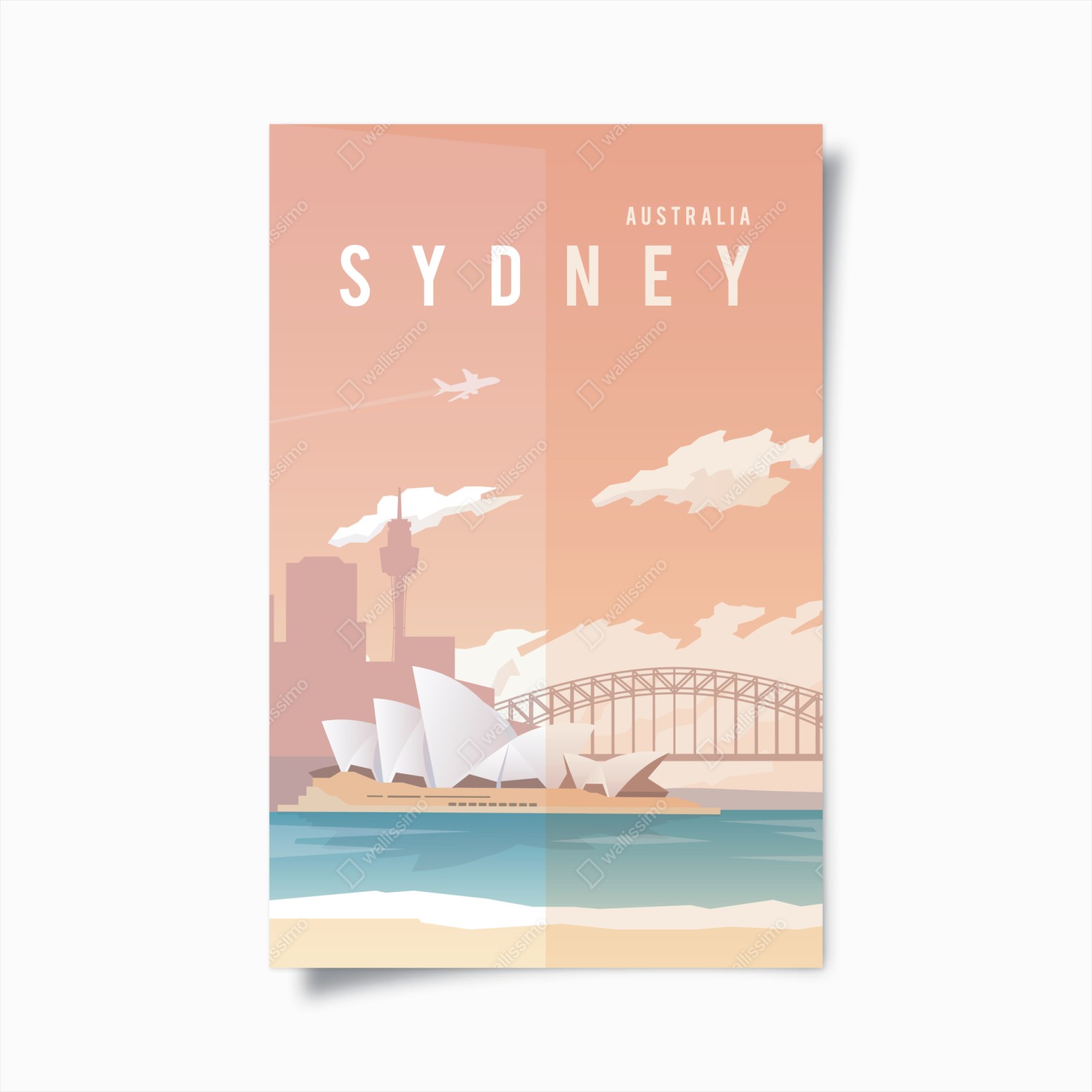 Poster pastellblick auf Sydney mit opernhaus und brücke – Wallnifity®
