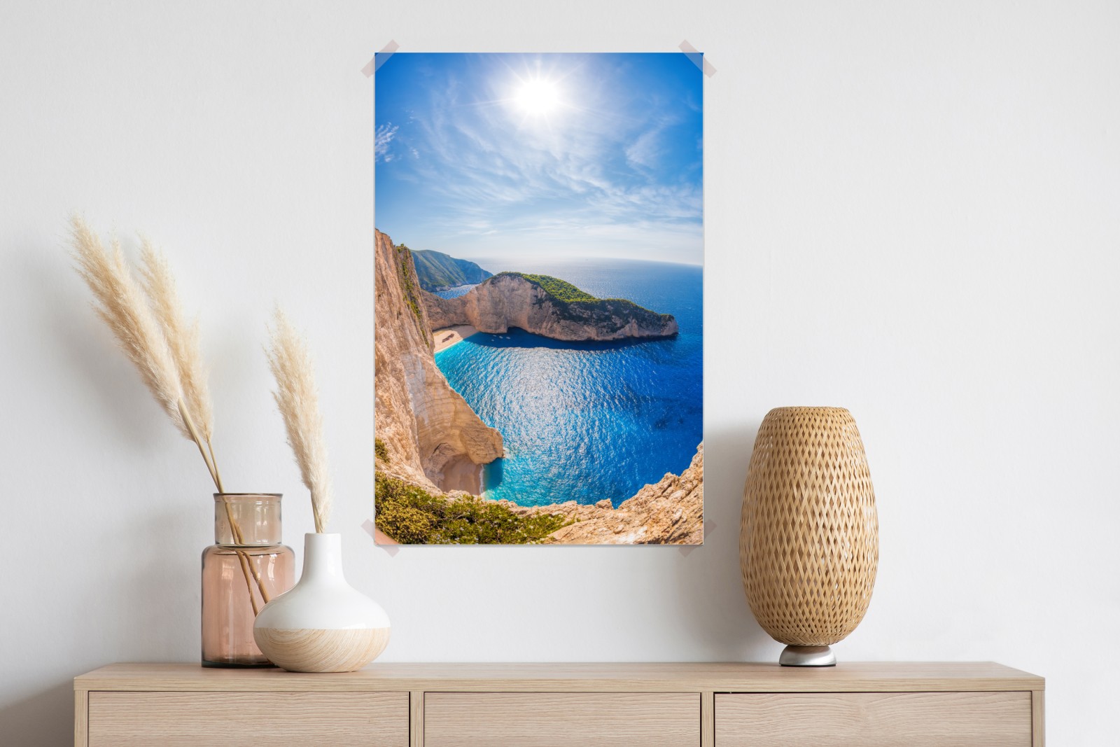 Bringen Sie die sonnenbeschienenen klippen und das türkisfarbene wasser von Navagio in Ihr Zuhause und schaffen Sie eine beruhigende, reiseinspirierte Atmosphäre.
