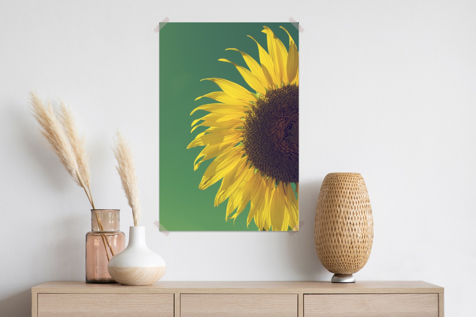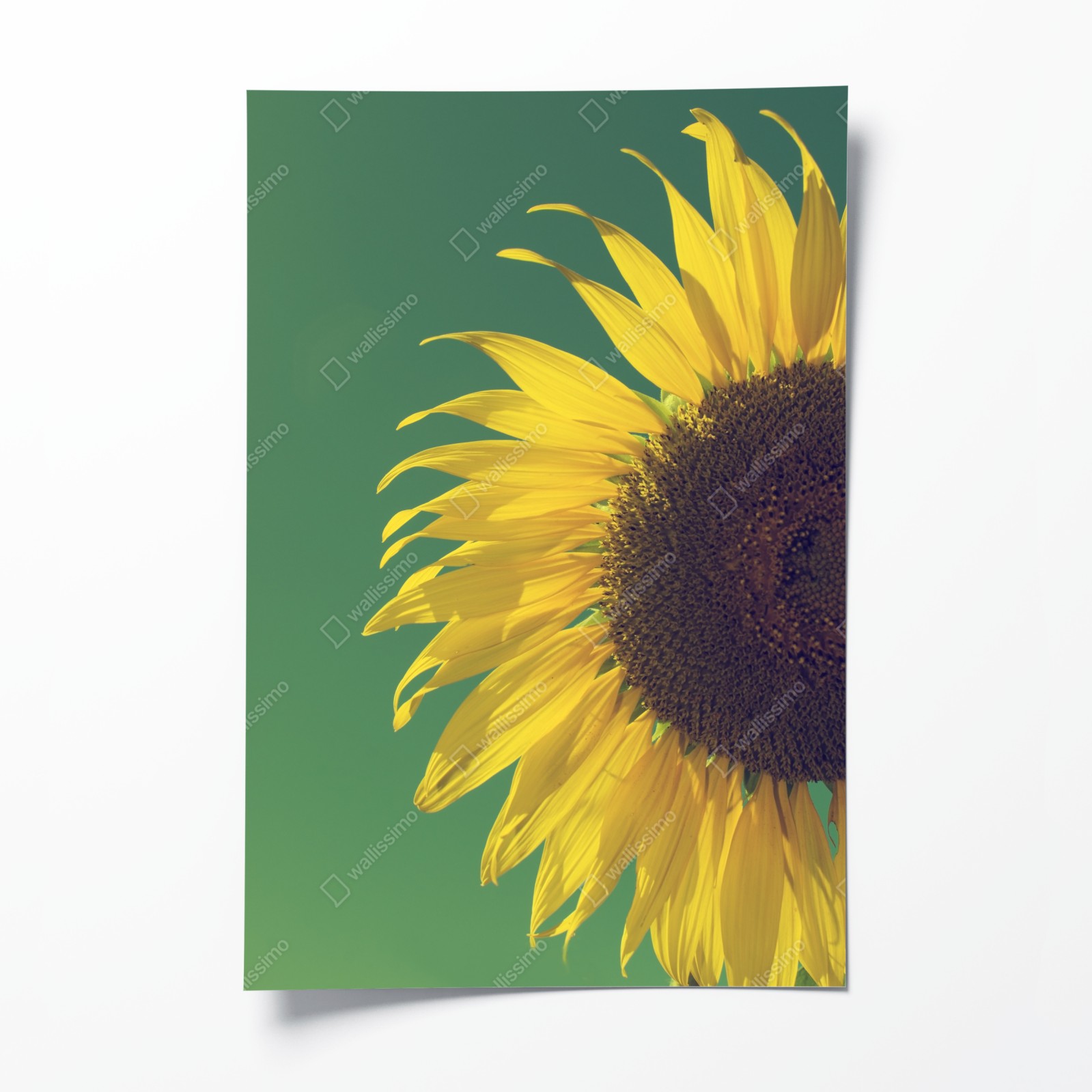Bringen Sie warme, belebende Stimmung in Ihr Zuhause mit einer Nahaufnahme einer Sonnenblume in sanften Vintage-Tönen.