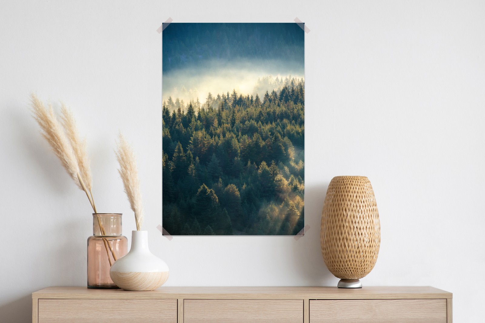 Poster nebliger kiefernwald im morgenlicht – Wallnifity®