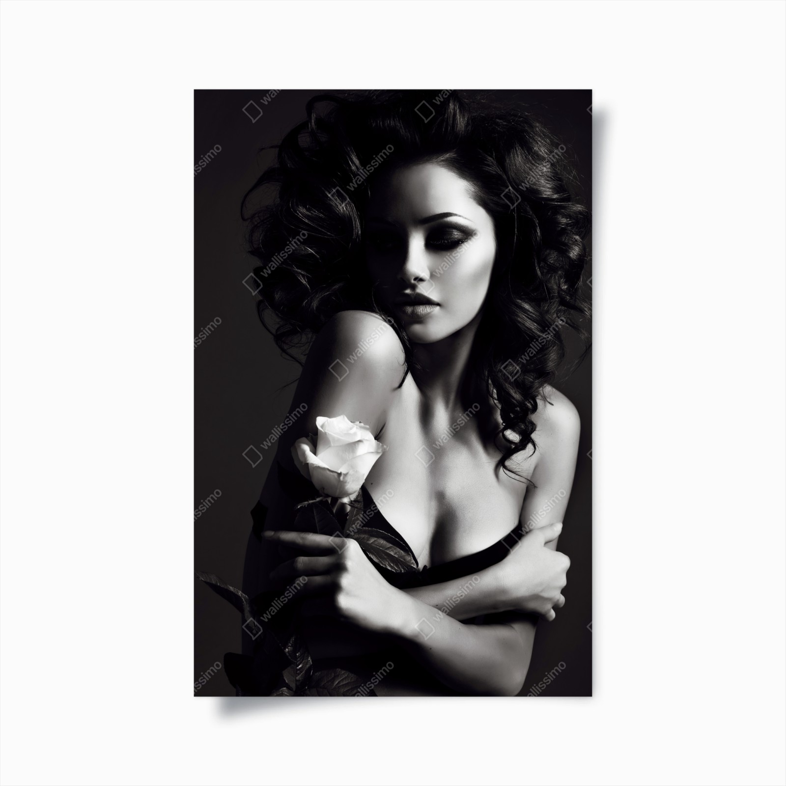 Poster Sinnliches schwarzweiß-porträt mit rose